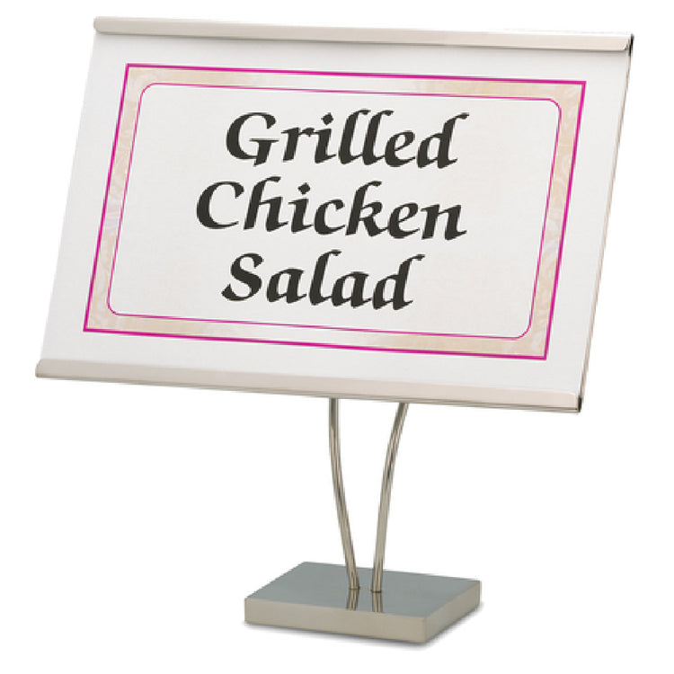 The Bon Chef 61329 Signage Display 8-1/2" x 5" x 8-7/8" Large is an elegantly crafted display piece made from stainless steel, designed to enhance the presentation of information in various professional environments. The specific dimensions of 8-1/2 inches by 5 inches by 8-7/8 inches provide ample space for clear and concise communication, whether used in a retail, hospitality, or corporate setting. The robust stainless steel construction ensures durability and a sleek, modern appearance that complements a wide range of interior decor styles. This signage display is ideal for businesses looking to elevate their brand visibility with a professional and sophisticated touch. The product’s large size caters to the need for prominent displays, ensuring that essential messages are easily visible to customers and clients. Its sturdy build makes it suitable for high-traffic areas, where durability is key. The Bon Chef 61329 Signage Display is a versatile solution for displaying menus, schedules, or promotional materials, meeting the diverse needs of industries that require both functionality and aesthetic appeal in their signage solutions.