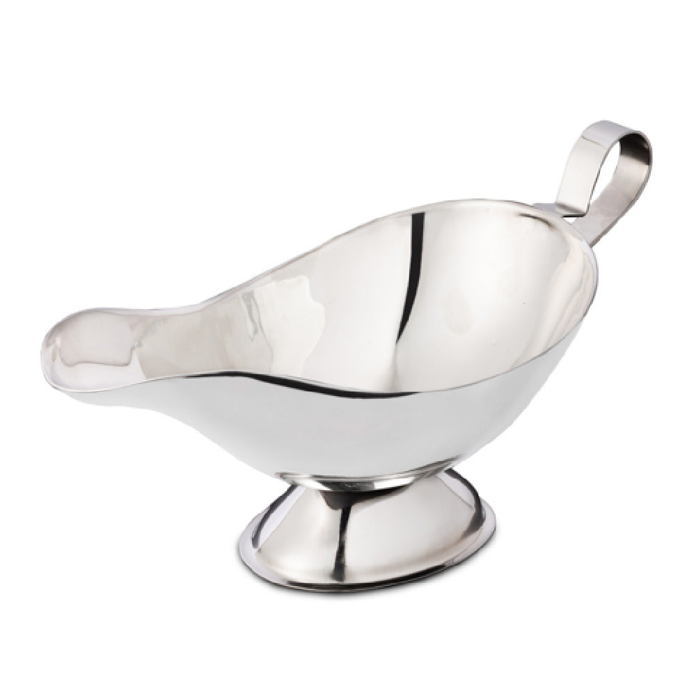 The Bon Chef 61383 Gravy Boat 8 Oz. Stainless Steel is a meticulously crafted piece tailored for both professional and domestic settings where quality and durability are paramount. With a capacity of 8 ounces, this gravy boat is perfectly sized for serving sauces, gravies, and dressings, ensuring an elegant presentation at any dining occasion. Constructed from high-quality stainless steel, it boasts remarkable resilience and resistance to rust and corrosion, making it a reliable choice for long-term use. Its sleek and polished exterior adds a touch of sophistication, fitting seamlessly into upscale restaurants, catering events, and home dining environments. The thoughtfully designed spout allows for precise pouring, minimizing spills and enhancing the dining experience. With its robust build and classic design, the Bon Chef 61383 Gravy Boat meets the demands of various market segments, from fine dining establishments seeking elegant tableware to home cooks desiring durable, stylish kitchen accessories. Its practicality and aesthetic appeal are complemented by its ease of maintenance, ensuring it remains a staple in any dining collection. The Bon Chef 61383 Gravy Boat is an exemplary choice for those who value quality craftsmanship and functional elegance in their dining accessories.