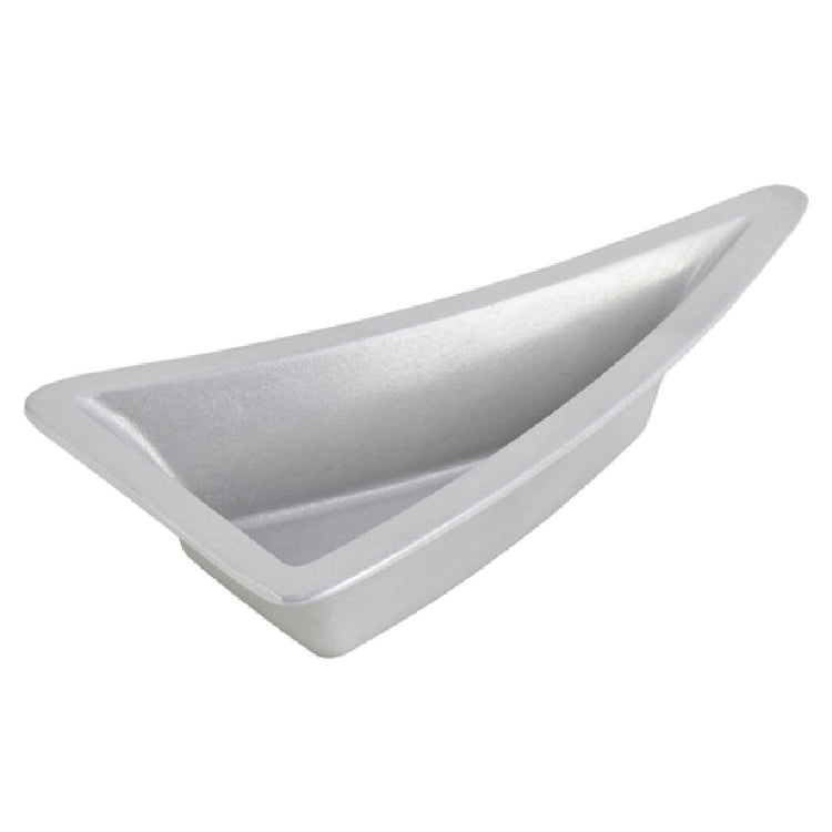 The Bon Chef 70070 Futura2 Platter is a uniquely shaped serving piece, measuring 11 inches in length, 5-1/2 inches in width, and standing at 3 inches in height. Its distinctive triangular form and Pewter-Glo finish make it a visually appealing choice for gourmet presentations. Crafted from high-quality aluminum, this platter combines durability with an elegant aesthetic. The sleek Pewter-Glo finish not only enhances its modern appearance but also offers a sophisticated touch, making it suitable for upscale dining experiences. The platter's size and shape provide ample space for presenting appetizers, desserts, or main courses, making it versatile for various culinary settings. Ideal for restaurants, hotels, and catering businesses, this platter aligns with contemporary dining trends while demonstrating functionality and style. Its aluminum construction ensures lightweight handling and resilience, facilitating ease of use in fast-paced kitchen environments. The Bon Chef 70070 Futura2 Platter is a strategic choice for hospitality professionals aiming to elevate their table service with a blend of practicality and modern design.
