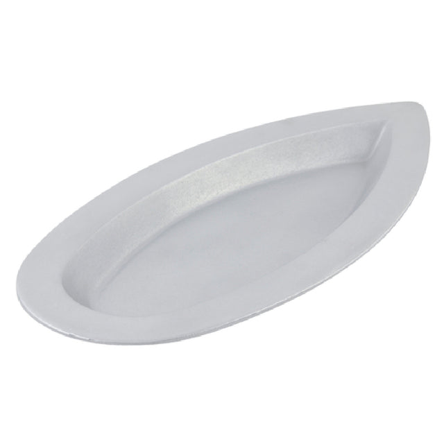 The Bon Chef 70072 Futura2 Platter is a meticulously crafted serving solution, boasting dimensions of 20 inches in length, 10 inches in width, and 1-1/2 inches in height. This platter features a distinctive tear drop shape, enhancing its aesthetic appeal while providing a unique serving surface. Constructed from high-quality aluminum, it ensures durability and longevity, making it a reliable choice for both casual and formal dining settings. The platter is finished with a Pewter-Glo coating, offering a sophisticated look that complements a wide range of table settings. Its design and finish make it particularly appealing to upscale restaurants, catering services, and hospitality venues seeking to present their culinary creations with an elegant touch. The Bon Chef 70072 Futura2 Platter's blend of functionality and style caters to diverse market segments within the foodservice industry, including fine dining establishments and event caterers, who value both the aesthetic presentation and the practical benefits of durable, easy-to-maintain serving ware. This product not only enhances the visual appeal of a dish but also withstands the rigors of a busy kitchen environment, maintaining its luster and form over time. The Bon Chef 70072 Futura2 Platter is a testament to the seamless fusion of design and practicality.