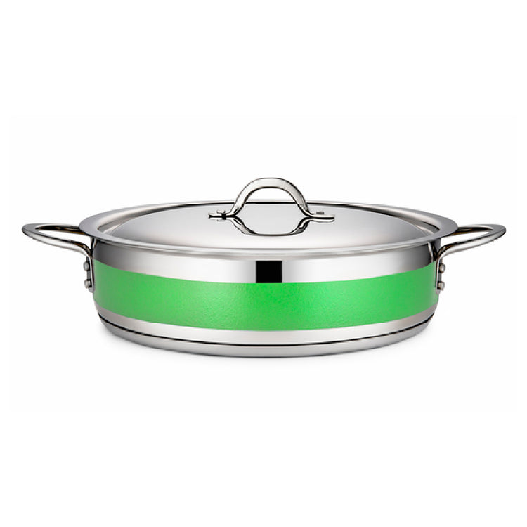 The Bon Chef 71030-CF2-L Country French X Pot is a versatile and high-quality cooking vessel designed to meet the needs of professional and home chefs alike. With a generous capacity of 6 quarts, this round pot measures 12-3/8 inches in diameter and 3 inches in height, making it ideal for a variety of cooking applications. Constructed from durable stainless steel, this pot ensures longevity and consistent performance. Its lime-colored finish adds a touch of style to any kitchen setting. A significant feature of this pot is its induction bottom, which provides compatibility with induction cooktops, offering quick and even heat distribution. The included lid helps in retaining moisture and flavors, ensuring that dishes are cooked to perfection. This pot is particularly suitable for segments within the culinary industry that prioritize efficiency and design, such as catering services, gourmet restaurants, and culinary schools. Its distinctive combination of form and function makes the Bon Chef 71030-CF2-L Country French X Pot a reliable choice for those who demand both performance and elegance in their cookware.