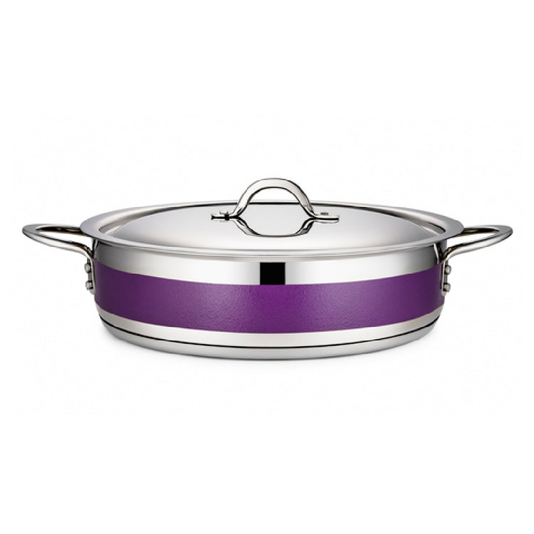The Bon Chef 71030-CF2-P Country French X Pot is a versatile kitchen essential, designed for culinary professionals seeking style and functionality. With a capacity of 6 quarts, this pot measures 12-3/8 inches in diameter and stands 3 inches high, making it ideal for preparing a variety of dishes. Its round shape, combined with a matching lid, ensures optimal heat retention and even cooking. Crafted from high-quality stainless steel, the pot boasts an induction bottom, allowing for efficient heat distribution across induction cooktops. The pot's striking purple color adds a touch of elegance and modernity to any kitchen setting, appealing to chefs who value aesthetics alongside performance. The durable construction of the Bon Chef Country French X Pot ensures long-lasting use, while its size and design make it suitable for both commercial kitchens and home cooking enthusiasts. Whether you're preparing a hearty stew or a delicate sauce, this pot provides the reliability and style that Bon Chef is renowned for. Its unique combination of size, material, and color makes it a standout choice for those looking to enhance their culinary creations with a touch of French-inspired elegance.