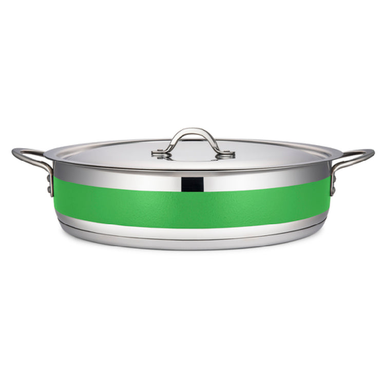 The Bon Chef 71032-CF2-L Country French X Pot 9 Qt. is a premium kitchen essential, designed to cater to the sophisticated needs of culinary experts and hospitality professionals. This pot boasts a substantial 9 quart capacity, making it an ideal choice for preparing large quantities of soup, stew, or sauce in commercial settings. With dimensions of 14-3/4" in diameter and 3-3/8" in height, it provides ample space for a variety of cooking applications. The pot features a round shape and comes complete with a lid, ensuring optimal heat retention and moisture control. Notably, it is equipped with an induction bottom, enhancing its compatibility with modern induction cooktops and promoting efficient energy use. Crafted from high-quality stainless steel, the Bon Chef Country French X Pot offers durability and resistance to rust and corrosion. Its distinctive lime finish adds a touch of elegance and style, making it not only functional but also aesthetically pleasing for open kitchen environments or buffet displays. This product is particularly valuable in the food service industry, offering a blend of practical features and visual appeal, and is well-suited for restaurants, hotels, and catering services seeking reliable cookware solutions.