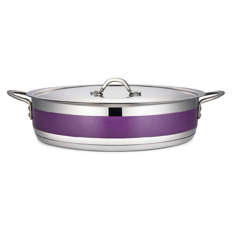 The Bon Chef 71032-CF2-P Country French X Pot is a versatile cookware piece distinguished by its substantial 9-quart capacity, making it highly suitable for both residential cooks and professional chefs. This pot boasts a 14-3/4 inch diameter and stands at 3-3/8 inches high, offering ample space for preparing large meals. Crafted from high-quality stainless steel, it ensures durability and longevity, catering to the demanding environments of commercial kitchens. The induction bottom enhances its cooking efficiency, allowing for quick and uniform heat distribution essential for perfect culinary results. The pot is adorned in a striking purple hue, adding a touch of elegance and style to any kitchen setting. The inclusion of a lid allows for effective heat retention and moisture control, crucial for simmering and stewing. Its design and specifications cater to diverse market segments, from high-end restaurants seeking reliable cookware to home cooks wanting professional-grade performance. The Bon Chef 71032-CF2-P Country French X Pot combines functionality and aesthetic appeal, making it a unique addition to any cookware collection, well-suited for induction cooking enthusiasts and those valuing both form and function in their kitchenware.