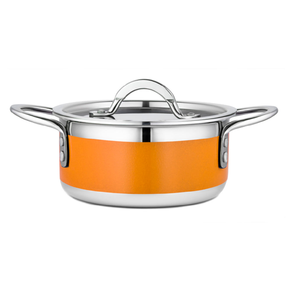 The Bon Chef 71299-CF2-O Country French X Pot is a thoughtfully designed culinary tool, expertly crafted for both professional kitchens and home environments. With a capacity of 1 quart and 22 ounces, this pot is ideal for preparing small to medium-sized dishes. Measuring 7 inches in diameter and 3 inches in height, its compact yet functional size makes it a versatile addition to any cookware collection. The pot comes with a fitted lid, enhancing cooking efficiency and heat retention. Its induction bottom is a standout feature, allowing for compatibility with induction cooktops and providing even heat distribution for precise cooking. Constructed from durable stainless steel, this pot ensures longevity and resistance to corrosion and staining. Its distinctive orange color adds a touch of vibrant sophistication, making it a stylish option for serving directly from the stovetop. The Bon Chef 71299-CF2-O Country French X Pot is an excellent choice for chefs seeking reliable and aesthetically pleasing cookware, suitable for a range of cooking techniques and styles. Its combination of size, material quality, and design makes it a valuable asset in various culinary settings, from gourmet restaurants to cozy home kitchens.