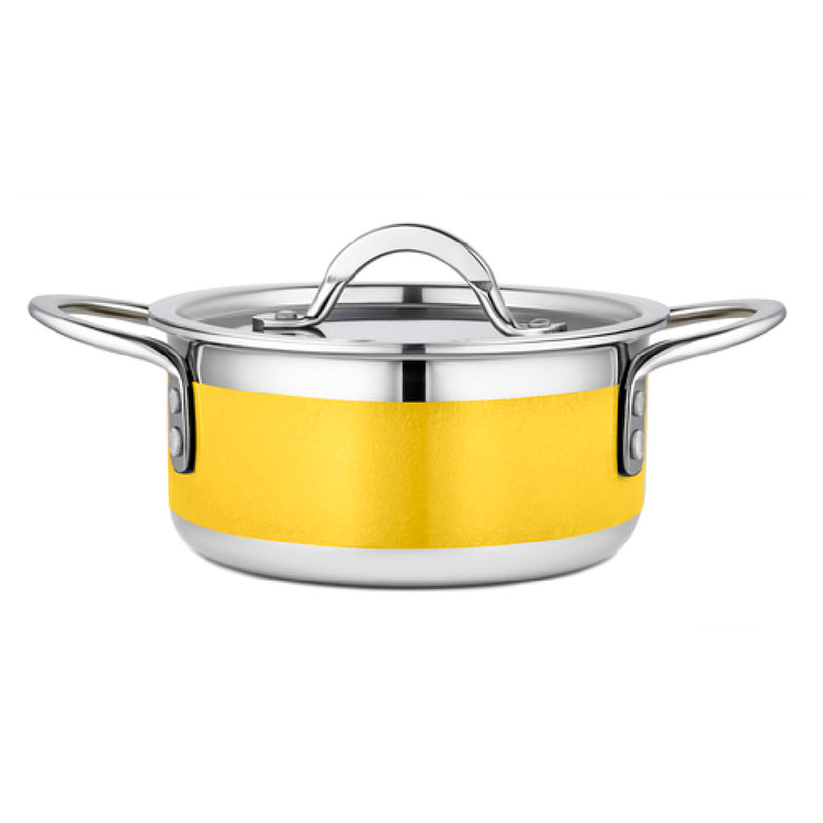 The Bon Chef 71299-CF2-Y Country French X Pot is a versatile cookware piece designed to meet the diverse needs of modern kitchens. With a capacity of 1 quart and 22 ounces, this pot is ideal for precise cooking tasks that require specific volume measurements. Its dimensions, featuring a 7-inch diameter and a 3-inch height, make it a practical choice for both home cooks and professional chefs seeking compact yet efficient cookware. The pot is round and comes with a lid, enhancing its functionality by allowing for reduced cooking times and improved heat retention. An induction bottom is a standout feature, ensuring compatibility with induction cooktops, which are known for their energy efficiency and rapid heating capabilities. Constructed from durable stainless steel, this pot promises longevity and consistent performance under high-temperature conditions. Its vibrant yellow color not only adds a splash of color to any kitchen setting but also provides an easy way to integrate the pot into color-coordinated kitchen decor. The combination of technical features and aesthetic design makes the Bon Chef 71299-CF2-Y Country French X Pot an appealing choice for various culinary applications across different market segments within the food service industry.