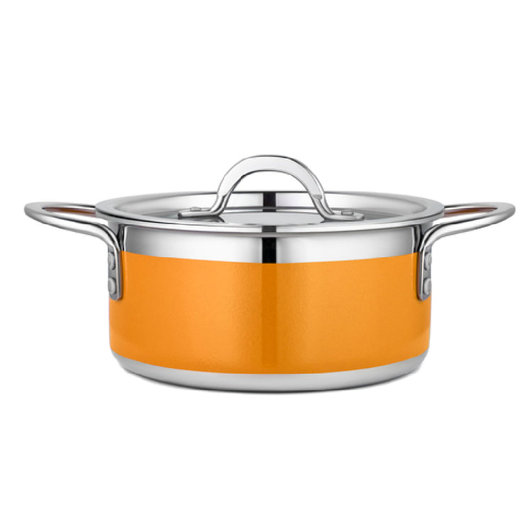 The Bon Chef 71300-CF2-O Country French X Pot is a meticulously crafted cookware piece, boasting a capacity of 2 quarts and 9 ounces, making it a versatile addition to any culinary setting. This pot measures 7-3/4 inches in diameter and stands 3-1/2 inches high, providing ample space for a wide range of cooking applications. Designed with a round shape, it comes equipped with a matching lid to ensure efficient cooking and heat retention. The pot features an induction bottom, optimizing it for use on induction cooktops and enhancing its versatility in modern kitchen environments. Constructed from premium stainless steel, this pot promises durability and long-lasting performance, while its vibrant orange finish adds a touch of style and elegance to any kitchen decor. The Bon Chef 71300-CF2-O Country French X Pot is an ideal choice for professional chefs and home cooks alike, seeking to elevate their culinary creations with a reliable and aesthetically pleasing cooking vessel. This pot seamlessly integrates functionality with design, catering to diverse market segments within the cookware industry and fulfilling the demands of those who prioritize both performance and presentation in their culinary tools.
