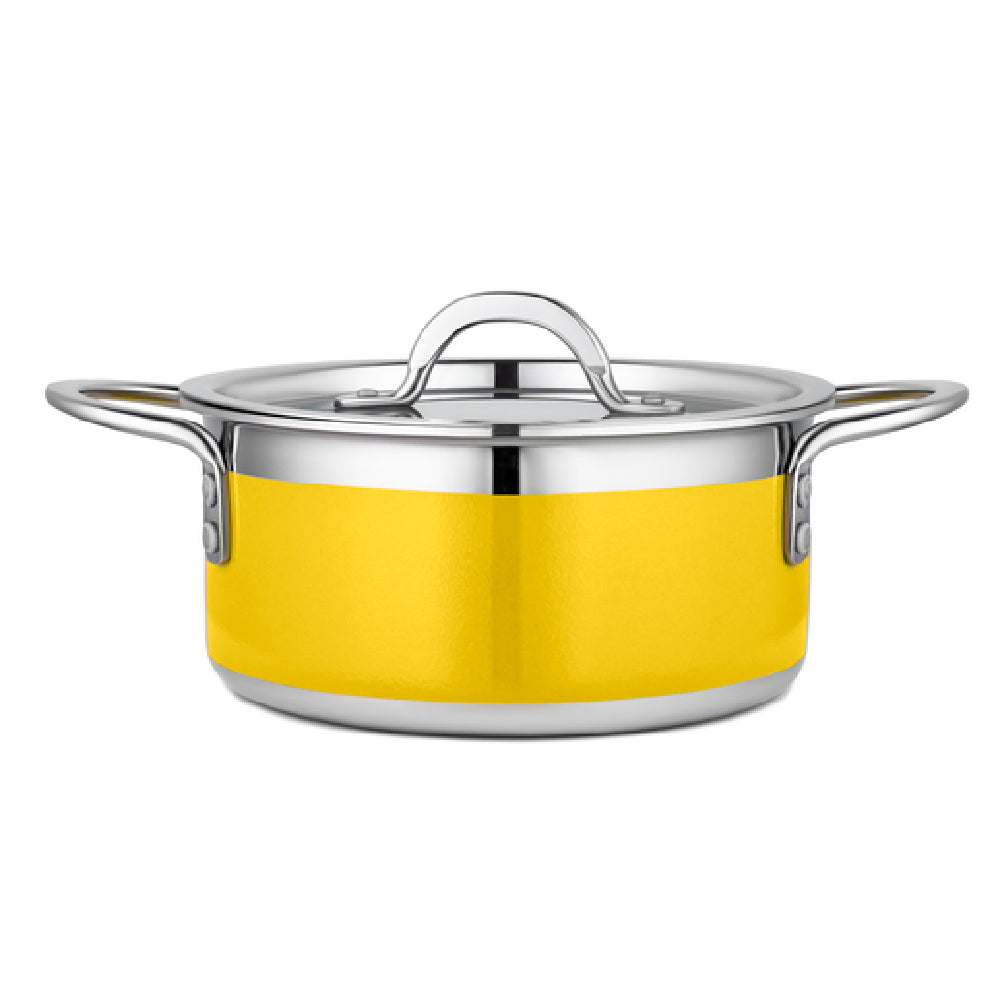 The Bon Chef 71300-CF2-Y Country French X Pot is a versatile kitchen essential, combining elegance with functionality. This 2-quart, 9-ounce pot has a diameter of 7-3/4 inches and stands 3-1/2 inches high, making it an ideal size for a variety of cooking applications. Crafted from durable stainless steel, it ensures longevity and robust performance in both home and professional kitchens. The pot features an induction bottom, enhancing its compatibility with modern cooking technology, and ensuring even heat distribution for optimal cooking results. Its vibrant yellow color not only adds a pop of brightness to your kitchen but also complements a range of culinary environments. The inclusion of a lid helps in retaining moisture and enhancing flavors, making it perfect for simmering, boiling, and slow-cooking recipes. Its round shape provides ample space for stirring and mixing, promoting even cooking. The Bon Chef Country French X Pot is a unique blend of style and utility, tailored to meet the needs of both amateur chefs and culinary professionals. With its appealing aesthetics and practical design, this pot is an invaluable addition to any cookware collection, catering to diverse cooking requirements with ease and efficiency.