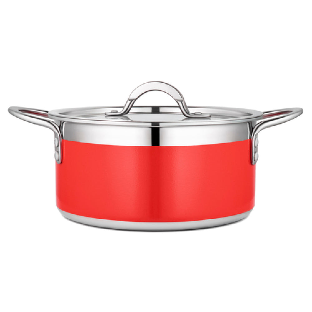 The Bon Chef 71301-CF2-R Country French X Pot 3 qt. 9 oz. is a versatile kitchen essential designed for both professional chefs and culinary enthusiasts. With its dimensions of 8-5/8" in diameter and 3-7/8" in height, this round pot is engineered to meet various cooking demands while offering ample space with a 3-quart 9-ounce capacity. Crafted from premium stainless steel, it ensures durability and resistance to wear, making it an enduring addition to any kitchen. The pot features an induction bottom, enabling compatibility with induction cooktops for efficient and uniform heating. This adaptability expands its utility across multiple cooking platforms, catering to diverse culinary techniques. The Bon Chef Country French X Pot comes with a secure lid that helps retain moisture and flavors, enhancing the quality of your dishes. Cloaked in an eye-catching red finish, it adds a touch of elegance to your kitchen décor. This pot is not just a cooking vessel but a statement of style and functionality, appealing to different market segments from household kitchens to high-end culinary establishments seeking reliable and aesthetically pleasing cookware.
