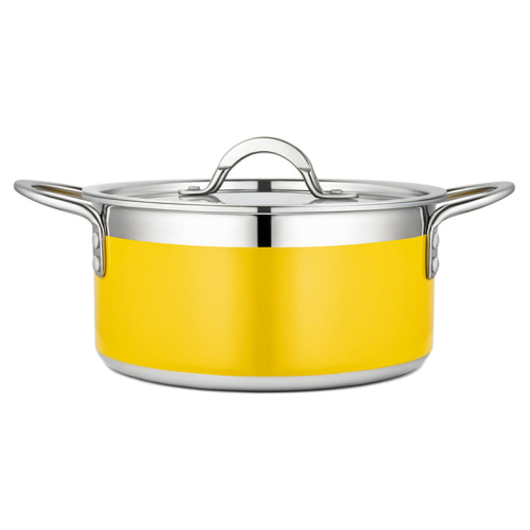 The Bon Chef 71301-CF2-Y Country French X Pot is a high-quality cookware piece designed for both professional chefs and home cooks seeking durability and efficiency. With a capacity of 3 qt. 9 oz., this round pot offers ample space for preparing a variety of dishes. Measuring 8-5/8" in diameter and 3-7/8" in height, it is compact yet spacious enough for versatile cooking applications. The pot comes with a lid, ensuring that the flavors and moisture are locked in during cooking. Its induction bottom makes it compatible with induction cooktops, providing even heat distribution for optimal cooking results. Constructed from stainless steel, the pot guarantees longevity and resistance to rust or corrosion, while its vibrant yellow finish adds a touch of color to any kitchen setting. The Bon Chef 71301-CF2-Y Country French X Pot is a practical choice for cooking enthusiasts who value quality construction and reliable performance in their kitchen equipment.