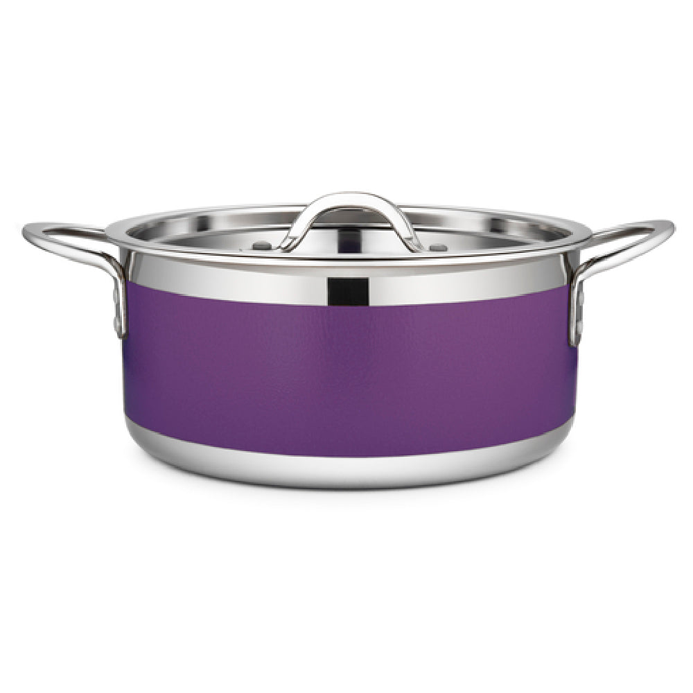 The Bon Chef 71302-CF2-P Country French X Pot is a versatile and stylish kitchen essential, featuring a capacity of 4 qt. 9 oz. This pot measures 9-3/8" in diameter and stands at 4-3/8" in height, making it a practical choice for various culinary tasks. Its round shape comes with an induction bottom, ensuring compatibility with modern induction cooktops, which enhances its efficiency in heat distribution and energy usage. The pot is crafted from durable stainless steel, providing excellent durability and easy cleaning, which is crucial for busy kitchens and home cooks alike. The eye-catching purple finish adds a touch of elegance and modern flair, making it not only a functional piece but also a stylish addition to any kitchen decor. This pot is equipped with a lid, which helps to retain heat and moisture, essential for achieving perfect cooking results. Its robust construction and appealing design make it a favored choice among professional chefs and home cooking enthusiasts. The Bon Chef 71302-CF2-P is especially valuable in settings where presentation and performance are equally important, serving the needs of diverse market segments within the culinary industry.