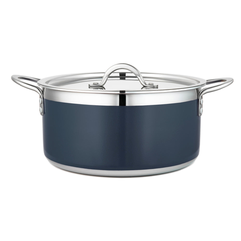 The Bon Chef 71303-CF2-CB Country French X Pot is a meticulously designed culinary tool perfect for the discerning chef. With a capacity of 5 qt. 22 oz., this pot offers ample space for cooking a variety of dishes, making it an ideal addition to both professional and home kitchens. Measuring 10-1/8" in diameter and 4-3/4" in height, its round shape ensures even heat distribution for consistent cooking results. The pot comes with an induction bottom, enhancing its compatibility with modern cooking methods and ensuring energy-efficient heat transfer. Crafted from high-quality stainless steel, it offers durability and resistance to corrosion, maintaining its pristine condition over time. The cobalt blue finish adds a touch of elegance, making it a visually appealing piece that stands out in any kitchen setting. Its included lid aids in heat retention and moisture preservation, crucial for achieving flavorful outcomes. The Bon Chef Country French X Pot effectively combines functionality with aesthetic appeal, catering to professional chefs in the hospitality industry as well as passionate home cooks who value both performance and style in their kitchenware. This pot's unique blend of features makes it a versatile and reliable choice for various culinary tasks.