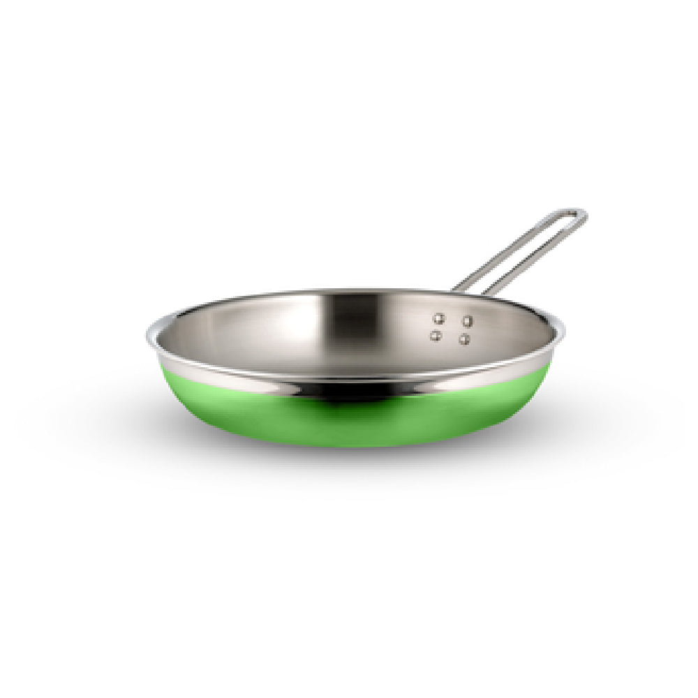 The Bon Chef 71307-CF2-L Country French X Saute Pan/Skillet is a versatile kitchen essential, designed with precision and quality for both professional chefs and home cooking enthusiasts. With a capacity of 1 quart 20 ounces, this skillet offers ample volume for small to medium-sized dishes, making it suitable for a wide range of culinary applications. The pan measures 10-1/8 inches in diameter and 1-7/8 inches in height, offering a compact yet efficient cooking space. Constructed from durable stainless steel, it ensures longevity and excellent heat retention, enhancing cooking performance. The induction bottom is a key feature, catering to modern kitchens equipped with induction cooktops while remaining compatible with other heat sources. Its distinctive lime finish not only adds a splash of color but also ensures easy maintenance and a non-reactive cooking surface. The long handle is ergonomically designed for comfortable grip and safe handling, enhancing maneuverability. This skillet does not come with a lid, allowing for versatile cooking techniques such as searing and sautéing. The Bon Chef 71307-CF2-L is a valuable addition to any kitchen, offering style, durability, and functionality in one sleek package, suitable for various market segments in the culinary industry.