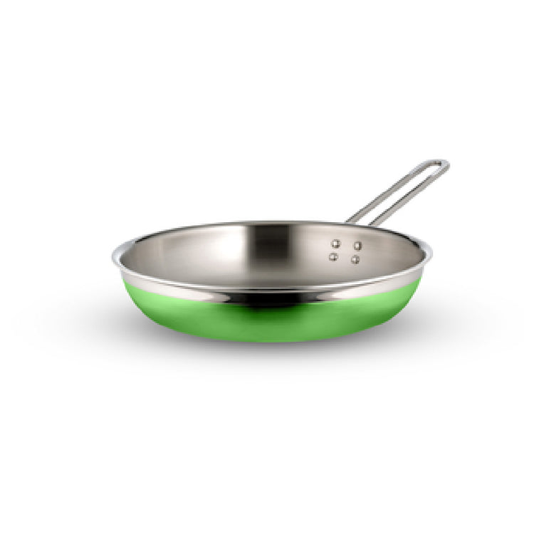 The Bon Chef 71308-CF2-L Country French X Saute Pan/Skillet is a versatile kitchen essential, crafted to meet the diverse needs of culinary professionals and home chefs alike. With a generous capacity of 2 qt. 12 oz., this skillet provides ample space for an array of cooking techniques, from sautéing to frying. The pan measures 11 inches in diameter and 2-1/8 inches in height, offering a spacious cooking surface without sacrificing maneuverability. Constructed from high-quality stainless steel, it ensures durability and a sleek aesthetic that complements any kitchen decor. This skillet features an induction bottom, making it compatible with induction cooktops, which is ideal for energy-efficient cooking. The long handle provides a secure grip, enhancing safety and control during use. Available in a vibrant lime color, the Bon Chef 71308-CF2-L adds a touch of style to your kitchen while delivering premium performance. Its round shape and lightweight design make it an excellent choice for both professional kitchens and home environments where versatility and dependability are paramount. This saute pan/skillet stands out in the market for its combination of quality construction, user-friendly features, and aesthetic appeal, making it a valuable addition to any cookware collection.