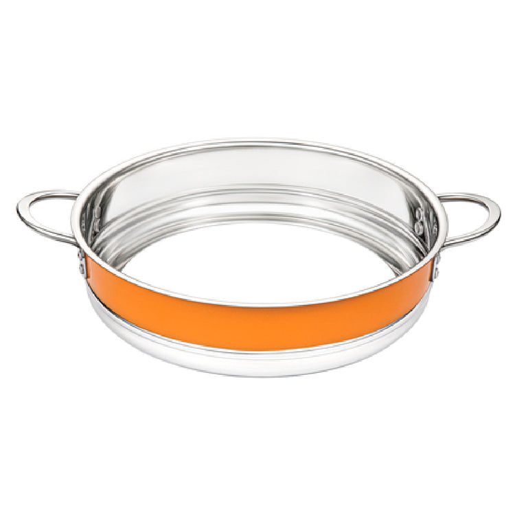 The Bon Chef 72030-BL-O Country French X Steam Table Food Pan Ring is meticulously designed for culinary professionals seeking efficiency and style. Measuring 12-3/8 inches in diameter and 3 inches in height, this round steam table food pan ring facilitates seamless integration into various food service setups. Crafted from high-quality stainless steel, it ensures durability and a sleek finish that complements any kitchen environment. The vibrant orange hue adds a touch of sophistication, enhancing presentation appeal. Notably, the ring is bottomless, offering versatility for chefs needing quick and easy access to contents without compromising hygiene. The Bon Chef 72030-BL-O is ideal for catering businesses, restaurants, and banquet halls where maintaining optimal food temperatures is critical. Its unique design promotes efficient heat transfer, making it indispensable for steam tables. This product exemplifies a blend of practical innovation and aesthetic elegance, catering to diverse market segments within the hospitality industry seeking reliable and stylish kitchen solutions.