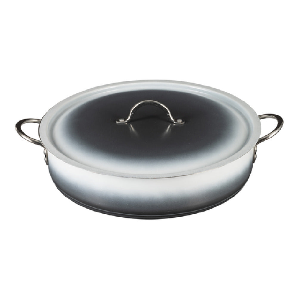 Bon Chef 73032-OM-S Country French X Ombre Brazier Pot 9 Qt 14 3/4" Dia X 3 3/8" H stands out as a versatile cookware essential, blending style with functionality. This round brazier pot offers a generous 9-quart capacity, making it suitable for a variety of culinary applications, from slow-cooking to braising. The pot's dimensions - 14 3/4 inches in diameter and 3 3/8 inches in height - provide ample space for ingredients, facilitating even cooking. Equipped with two 2-inch round riveted handles, it ensures secure handling and transport even when full. Constructed from high-quality 5-ply stainless steel, it guarantees durability and efficient thermal conductivity for consistent cooking results. The shadow gray finish adds a sophisticated touch, appealing to both home cooks and professional chefs. Importantly, this brazier is induction ready, broadening its compatibility with various heat sources. Additionally, its oven and dishwasher-safe features add convenience, allowing for seamless transition from cooking to cleaning. A matching lid complements the pot, retaining moisture and enhancing flavors. The Bon Chef 73032-OM-S is an exceptional choice for those seeking reliable and stylish cookware to enhance their kitchen repertoire.