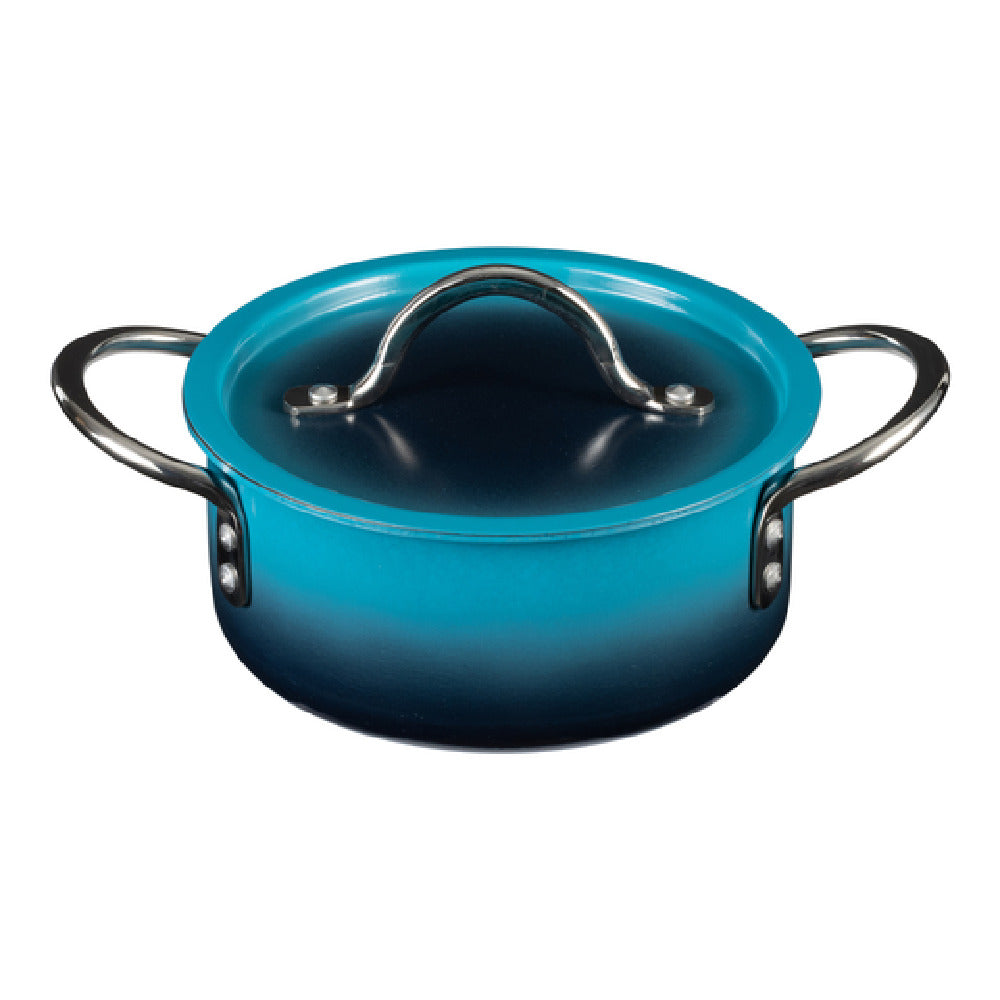 The Bon Chef 73299-OM-C Country French X Ombre Sauce Pot is a versatile kitchen essential, designed to meet the needs of both home cooks and professional chefs. With a capacity of 1 quart 22 ounces and dimensions of 7 inches in diameter and 3 inches in height, this round sauce pot is perfect for a variety of cooking tasks. It comes with a matching lid and features two 2-inch round riveted handles for secure handling. This sauce pot is constructed from 5-ply stainless steel, ensuring durability and even heat distribution. The Caribbean Blue exterior not only adds a splash of color to any kitchen but also signifies its premium quality. The Bon Chef sauce pot is induction ready, making it suitable for modern cooking technologies, while its oven and dishwasher-safe properties allow for easy use and maintenance. Crafted with precision, this sauce pot caters to culinary professionals seeking reliability in high-pressure environments, as well as home enthusiasts who appreciate the blend of functionality and style. Its unique combination of features makes it an excellent choice for those looking to enhance their cooking experience with a high-performance, aesthetically pleasing kitchen tool.