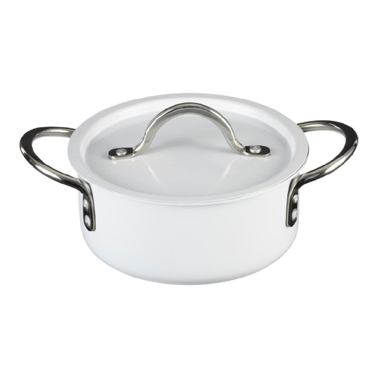 The Bon Chef 73299-OM-W Country French X Ombre Sauce Pot is a versatile culinary tool, designed with precision and functionality in mind, making it a valuable asset for diverse market segments in the food industry. With a capacity of 1 qt 22 oz, this sauce pot offers ample volume for preparing a variety of sauces and reductions, catering to professional chefs and home cooks alike who demand consistency and quality. Its dimensions, 7" x 3", provide an ideal balance of size and convenience, fitting comfortably on most stovetops. Crafted from 5-ply stainless steel, this pot ensures even heat distribution, enhancing cooking efficiency and performance, and is both oven and dishwasher safe, underscoring its practicality and ease of maintenance. The inclusion of a lid and two 2" round riveted handles enhances its usability, facilitating secure handling and transport, crucial for busy kitchen environments. Additionally, the white ombre finish adds a touch of elegance, appealing to those who seek style without compromising on functionality. Its induction-ready design expands its compatibility across various cooking technologies, ensuring adaptability in modern culinary spaces. The Bon Chef 73299-OM-W stands as a testament to durable engineering and thoughtful design, meeting the rigorous demands of today's kitchens.