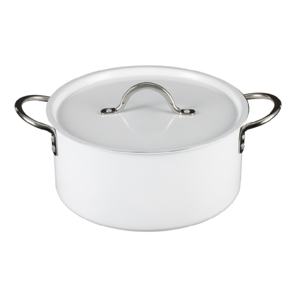 The Bon Chef 73303-OM-W Country French X Ombre Sauce Pot 5 Qt 22 Oz 10″ Dia X 4.75″ H is a meticulously crafted kitchen essential, designed to meet the demands of both professional chefs and culinary enthusiasts. With a capacity of 5 quarts and 22 ounces, this round sauce pot is ideal for preparing a variety of sauces and soups. Its dimensions, 10 inches in diameter and 4.75 inches in height, provide ample space for cooking without overcrowding. This sauce pot includes a lid and features (2) 2-inch round riveted handles, ensuring a secure grip and easy handling. The pot's construction is exceptional, boasting a 5-ply stainless steel design that ensures even heat distribution and durability. Its white ombre finish adds a touch of elegance to any kitchen setting. Engineered for versatility, it is induction ready, oven safe, and dishwasher safe, catering to a wide range of cooking preferences and cleaning conveniences. The Bon Chef 73303-OM-W sauce pot is a superior choice for industry professionals and home cooks alike, offering unmatched functionality and a stylish aesthetic for a diverse range of culinary applications.