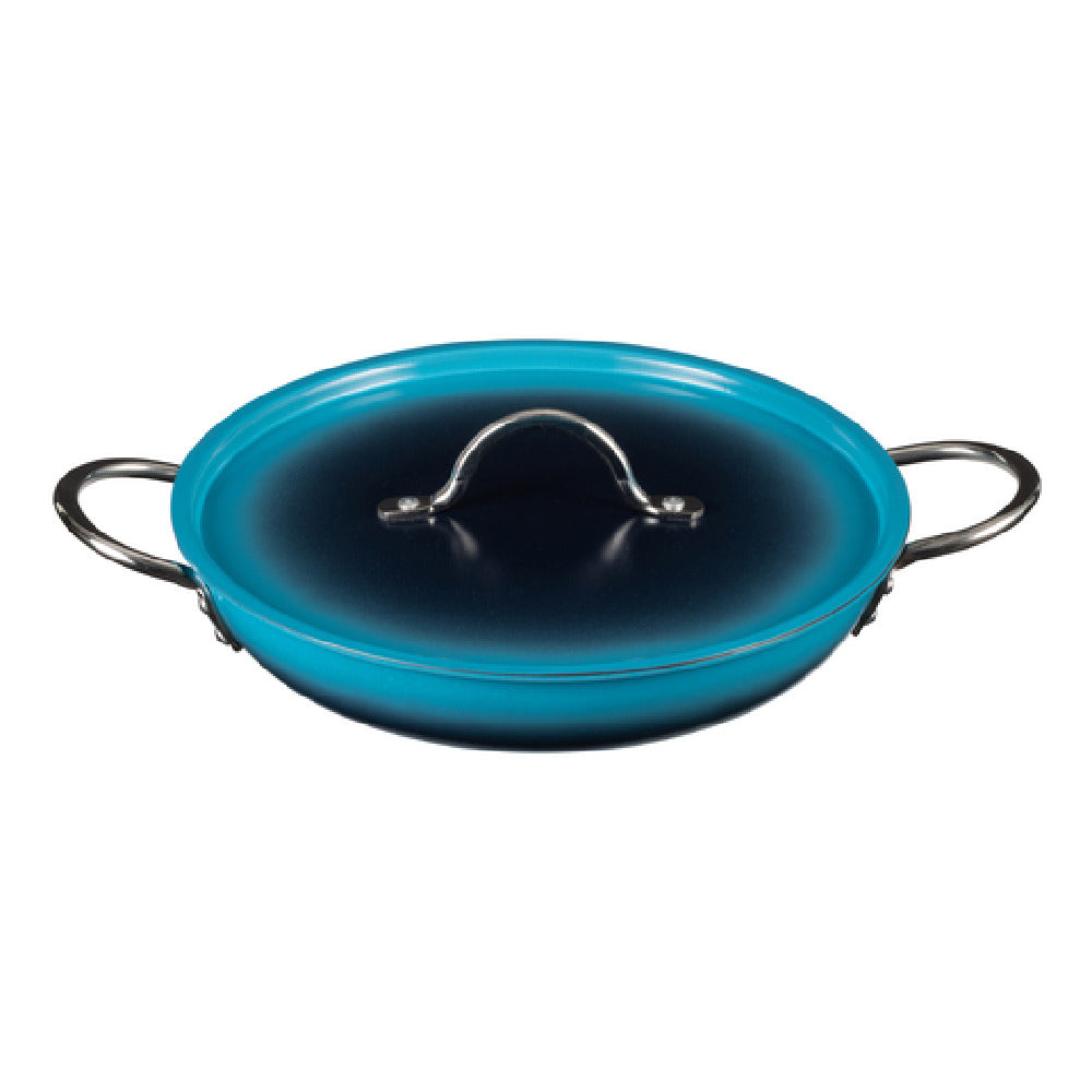 The Bon Chef 73305-OM-C Country French X Ombre Saute Pan 2 qt 12 oz is an exceptional kitchen essential crafted for culinary enthusiasts and professionals seeking both style and functionality. Measuring 11 inches in diameter and 2 inches in height, this round saute pan is designed with precision to elevate cooking experiences. It features a durable 5-ply stainless steel construction, ensuring superior heat distribution and retention, which is essential for evenly cooked meals. The Caribbean Blue finish adds a touch of elegance, making it a visually appealing addition to any kitchen. This saute pan is equipped with two 2-inch round riveted handles, providing a secure and comfortable grip for effortless maneuvering. It comes with a matching lid, enhancing its cooking versatility. Designed for convenience, the pan is both oven and dishwasher safe, simplifying post-cooking cleanup. Furthermore, its induction-ready capability expands its usability across various stovetop types, catering to diverse cooking preferences. Whether for a home kitchen, a professional culinary setting, or an induction cooking application, the Bon Chef 73305-OM-C Country French X Ombre Saute Pan offers a blend of aesthetic appeal, functionality, and technical excellence, meeting the diverse needs of chefs and cooking enthusiasts alike.
