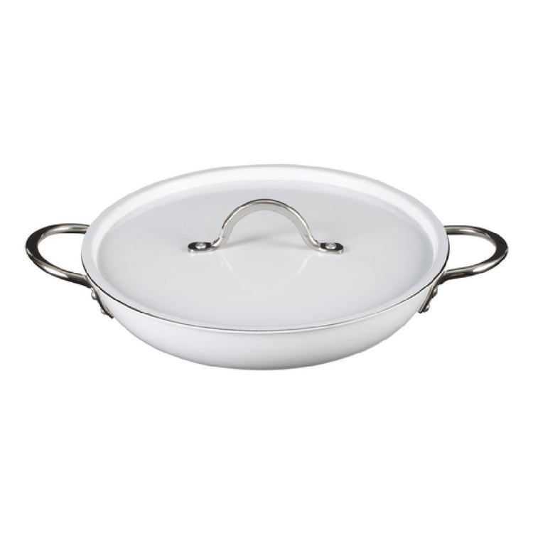 The Bon Chef 73305-OM-W Country French X Ombre Saute Pan 2 Qt 12 Oz 11" Dia X 2" H is a premium culinary tool designed for both professional kitchens and home chefs seeking high-quality cookware. Featuring a round silhouette with an impressive capacity of 2 quarts and 12 ounces, this saute pan ensures ample cooking space for a variety of dishes. Its dimensions stand at 11 inches in diameter and 2 inches in height, making it ideal for versatile cooking applications. This cookware comes complete with a lid, enhancing its usability for simmering and moisture retention. Equipped with (2) 2-inch round riveted handles, the pan provides secure gripping for safe handling. The Bon Chef 73305-OM-W is constructed from 5-ply stainless steel, ensuring exceptional durability and heat distribution. Its white finish adds a touch of elegance to any kitchen setting. Notably, this saute pan is oven and dishwasher safe, offering convenience in both cooking and cleaning processes. Furthermore, it is induction ready, broadening its compatibility with modern cooking technologies. The Bon Chef 73305-OM-W Country French X Ombre Saute Pan represents a harmonious blend of functionality and style, catering to diverse market segments within the food industry.