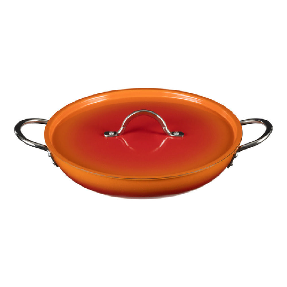 The Bon Chef 73306-OM-T Country French X Ombre Saute Pan 3 Qt 4 Oz 11.25″ Dia X 2.75″ H is a premium cookware piece meticulously designed for culinary professionals and enthusiasts alike. This round saute pan boasts a distinctive tangerine ombre finish that seamlessly blends style with functionality. Its impressive capacity of 3 quarts and 4 ounces caters to both small-scale and larger cooking needs. The pan is crafted from high-quality stainless steel, ensuring robustness and longevity. It features a 5-ply construction that delivers even heat distribution, making it induction ready and suitable for various cooking surfaces. The 11.25-inch diameter and 2.75-inch height are complemented by two 2-inch round riveted handles, providing secure and comfortable handling. Additionally, the pan includes a matching lid, assisting in moisture retention and flavor enhancement. This versatile cookware is both oven and dishwasher safe, simplifying cooking and cleaning processes. Ideal for professional kitchens and home cooks, the Bon Chef 73306-OM-T Country French X Ombre Saute Pan combines practical design with elegant aesthetics, making it a valuable addition to any culinary setting.