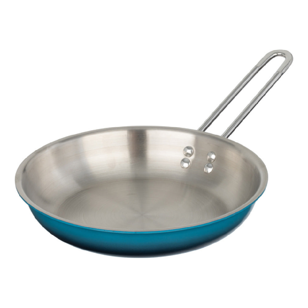 The Bon Chef 73307-OM-C Country French X Ombre Saute Pan is an expertly crafted kitchen tool, boasting a capacity of 1 quart and 20 ounces, making it versatile for various cooking needs. With a diameter of 10 inches and a height of 2 inches, this round pan is designed without a lid, enhancing its simplicity and ease of use. Featuring a single 7-inch long riveted handle, the pan offers a sturdy grip, ensuring safety and convenience during cooking. The Bon Chef Country French X Ombre Saute Pan stands out with its 5-ply stainless steel construction, providing exceptional heat distribution and retention, while being both oven and dishwasher safe, facilitating effortless maintenance. Additionally, this saute pan is induction ready, expanding its compatibility with various cooking surfaces. The Caribbean Blue finish adds a vibrant touch to any kitchen decor, making it not only a functional kitchen staple but also an attractive addition to your culinary collection. Perfect for professional chefs and home cooks alike, the Bon Chef 73307-OM-C combines durability, style, and versatility, catering to diverse market segments within the culinary industry, from commercial kitchens to home environments that value both performance and aesthetic appeal.
