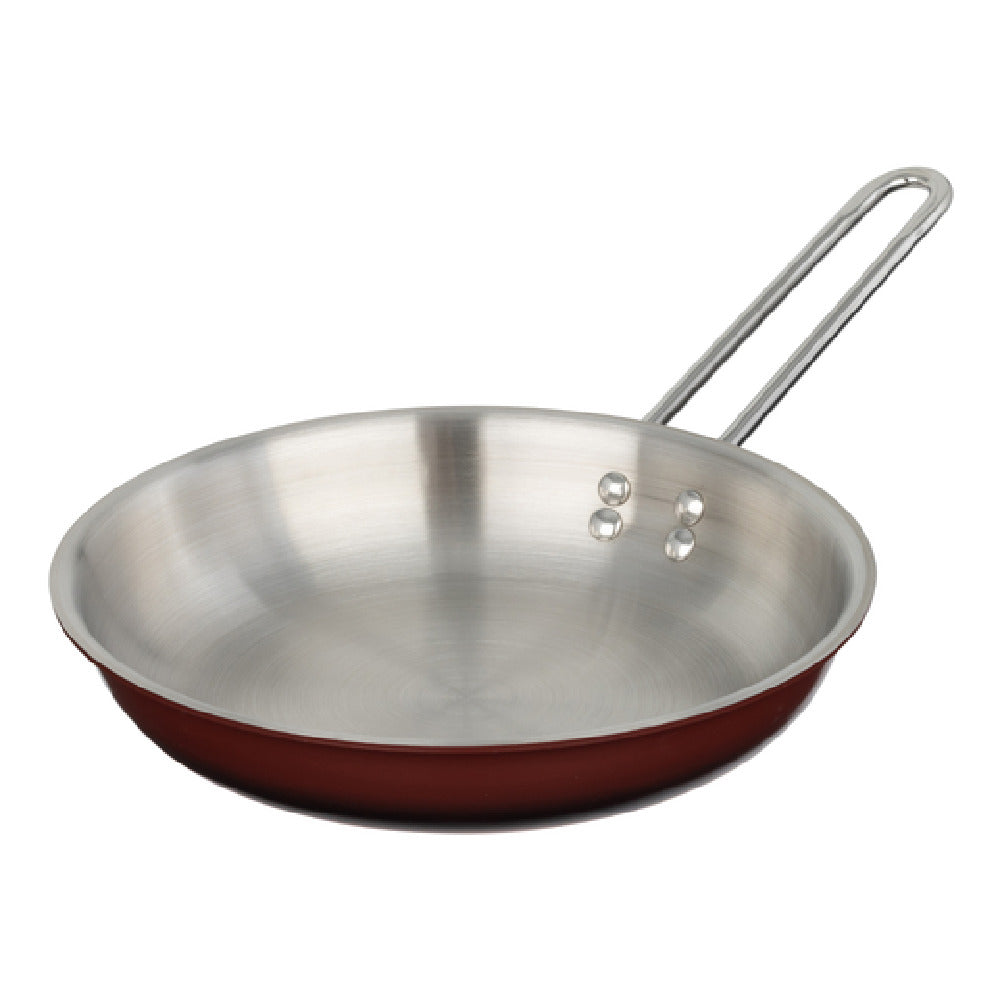 The Bon Chef 73307-OM-M Country French X Ombre Saute Pan is a meticulously crafted kitchen essential that combines form and function. With a capacity of 1 quart and 20 ounces, this round sauté pan features a 10-inch diameter and a 2-inch height, making it ideal for a variety of culinary applications. Engineered without a lid, it integrates a 7-inch long riveted handle, ensuring a secure grip and ease of maneuverability during use. This sauté pan is designed for versatility, being oven and dishwasher safe, which enhances its practicality for professional and home kitchens. Notably induction ready, it features a sophisticated 5-ply stainless steel construction finished in a striking merlot ombre, which not only offers excellent heat distribution and retention but also adds a touch of elegance to any kitchen setting. This high-quality cookware piece is perfect for chefs and cooking enthusiasts looking for durability and style in their culinary tools, proving essential for tasks ranging from searing to simmering. The Bon Chef 73307-OM-M Country French X Ombre Saute Pan stands out as a reliable choice in the cookware market, offering remarkable performance across various cooking technologies and environments.