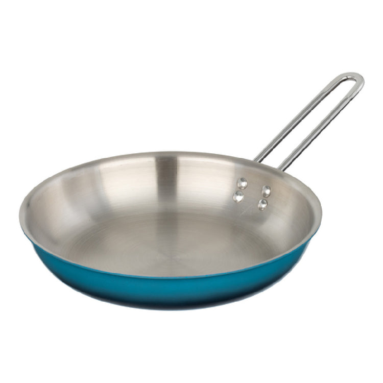 The Bon Chef 73308-OM-C Country French X Ombre Saute Pan is a versatile kitchen essential designed to meet the demands of both professional chefs and home cooks. This saute pan has a capacity of 2 qt 12 oz, providing ample space for a variety of cooking needs. With an 11-inch diameter and a height of 2 inches, it offers an ideal size for sauteing or simmering. Constructed with 5-ply stainless steel, the pan ensures even heat distribution, enhancing cooking efficiency. It features a distinctive Caribbean Blue ombre finish that adds a touch of elegance to any kitchen decor. The pan is equipped with a 7-inch long riveted handle, ensuring a secure grip for safe maneuvering. Its induction-ready design means it can be used on a range of cooktops, including induction, broadening its usability in diverse kitchen settings. Additionally, the pan is oven and dishwasher safe, making it convenient for both cooking and cleaning. While it comes without a lid, its sturdy construction compensates, providing durability and reliability. The Bon Chef 73308-OM-C is an attractive choice for culinary professionals and enthusiasts seeking a functional and stylish addition to their cookware collection.