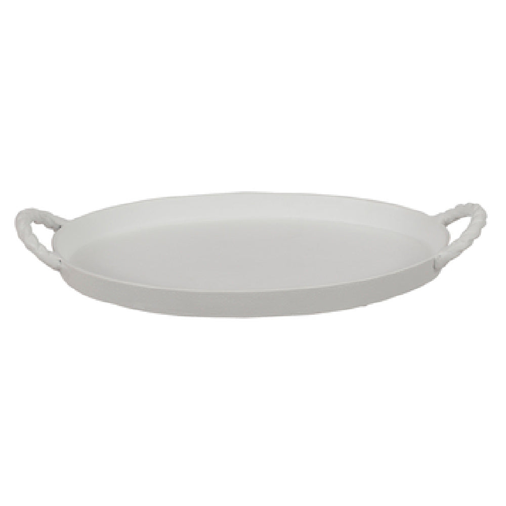 The Bon Chef 80110TERRA Tray 15" X 9-7/16" X 1-5/8"H Oval is an elegantly designed serving solution that combines functionality and aesthetic appeal. Its precise dimensions of 15 inches in length, 9-7/16 inches in width, and a height of 1-5/8 inches make it a versatile choice for various culinary presentations. The tray features an oval shape, providing a distinctive presentation base for an array of dishes. Constructed from durable aluminum, this tray boasts a ceramic-look coating that mimics the elegant appearance of ceramic while offering the lightweight and robust qualities of aluminum. The Sandstone and Terra Cotta finish enhances its visual appeal, making it an attractive addition to both casual and formal dining settings. A unique feature of this tray is its rope handle, which not only adds a rustic charm but also ensures easy handling and transport. This tray is ideal for use in upscale restaurants, catering events, and hospitality settings, providing both style and practicality for food service professionals. The Bon Chef 80110TERRA Tray is a valuable asset for those looking to elevate their food presentation with a blend of durability and aesthetic sophistication.