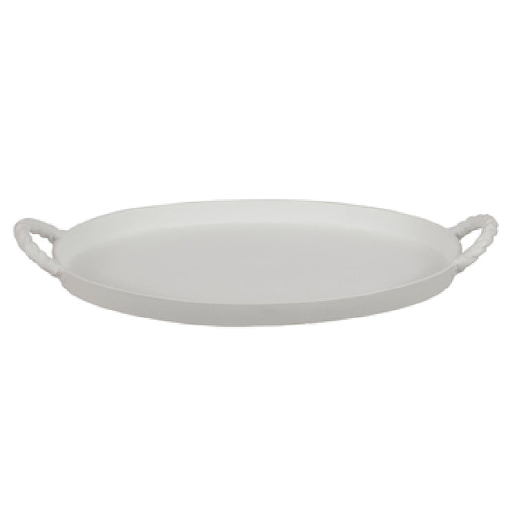 The Bon Chef 80111BLK Tray is an elegantly designed oval tray measuring 16-15/16 inches in length, 11-7/16 inches in width, and 1-5/8 inches in height. Crafted from aluminum, this tray is coated to mimic the refined appearance of ceramic, available in a sophisticated Sandstone Black finish. The unique addition of rope handles enhances its aesthetic appeal while providing ease of handling, making it a practical choice for both service and presentation. This tray is ideal for diverse market segments within the hospitality and food service industries, offering a versatile solution for upscale restaurants, catering events, and hotel banquet services. Its durable construction ensures long-lasting performance, while the ceramic-look coating provides an elegant and modern touch, aligning with contemporary design trends. The Bon Chef 80111BLK Tray combines functionality with a striking design, catering to establishments that value both utility and style in their service ware.