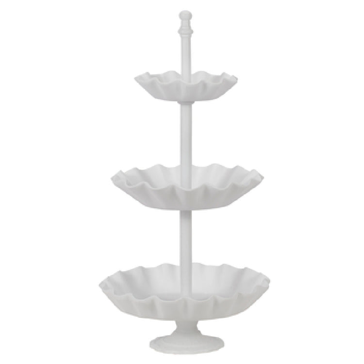 The Bon Chef 80172TANGREVISION Cake Stand 13" Dia. X 26"H 3-tier is an elegantly designed serving piece, crafted to enhance the presentation of cakes and desserts in a variety of settings. This round cake stand, measuring 13 inches in diameter and 26 inches high, is constructed from durable aluminum, ensuring reliable stability and longevity. It features a unique ceramic-look coating that gives an aesthetically pleasing Sandstone finish, beautifully complemented by a vibrant Tangerine hue. This 3-tier structure is ideal for showcasing a selection of cakes, pastries, and other sweet delights, making it a versatile addition to banquet halls, catering services, and upscale dining venues. Its robust build and stylish appearance cater to the needs of both commercial establishments and home entertainers aiming to impress their guests. The Bon Chef cake stand not only offers a practical solution for dessert presentation but also acts as a decorative centerpiece, blending functionality with visual appeal. Its thoughtful design and premium materials reflect its commitment to quality, making it a standout choice for professionals in the culinary industry seeking to elevate their event settings with a touch of sophistication and color.