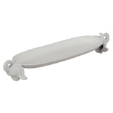 The Bon Chef 81009CARM Platter 16-3/4" X 6-1/8" X 2-13/16"H Oval is a meticulously crafted serving piece that seamlessly blends functionality with elegant design. This platter features a distinctive oval shape and measures 16-3/4 inches in length, 6-1/8 inches in width, and 2-13/16 inches in height, making it an ideal choice for serving a variety of dishes with sophistication. The platter is adorned with a unique elephant handle décor, adding a touch of whimsy and charm to any setting. Constructed from durable aluminum, it boasts a ceramic-look coating that provides the aesthetic appeal of fine ceramics while ensuring robust durability and ease of maintenance. The Sandstone Caramel finish lends a warm, inviting hue to the platter, making it a versatile addition to both contemporary and traditional table settings. This Bon Chef platter is particularly suited for the hospitality industry, as well as for upscale dining experiences in hotels and restaurants, where presentation is paramount. Its unique design and high-quality construction make it a standout choice for chefs and culinary professionals looking to elevate their presentation and enhance the dining experience for their guests.