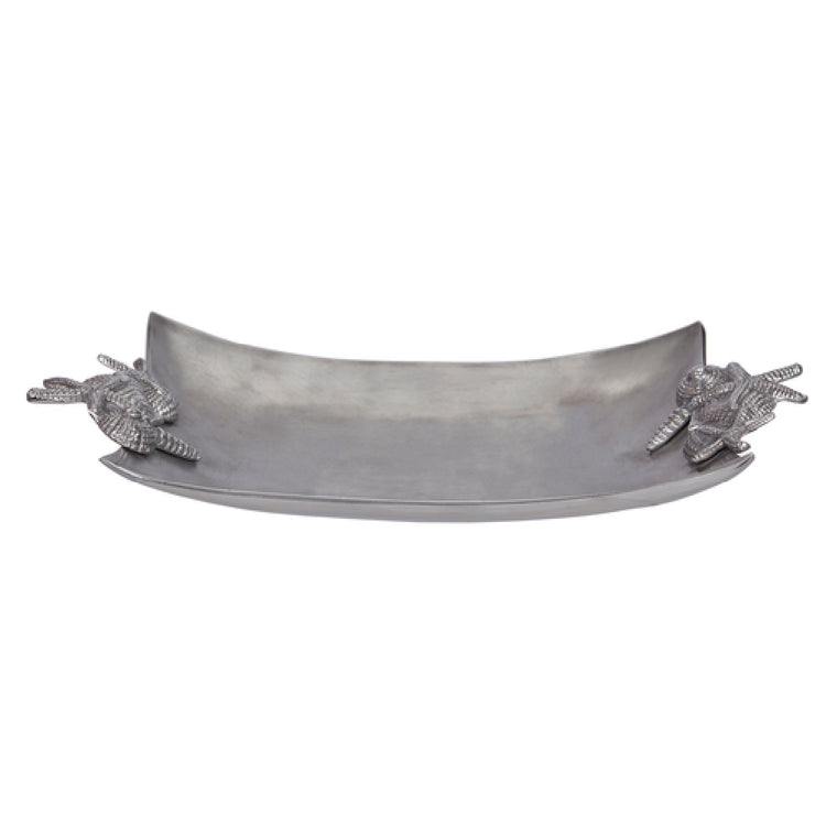 - Elegant rectangular platter with shell handle décor