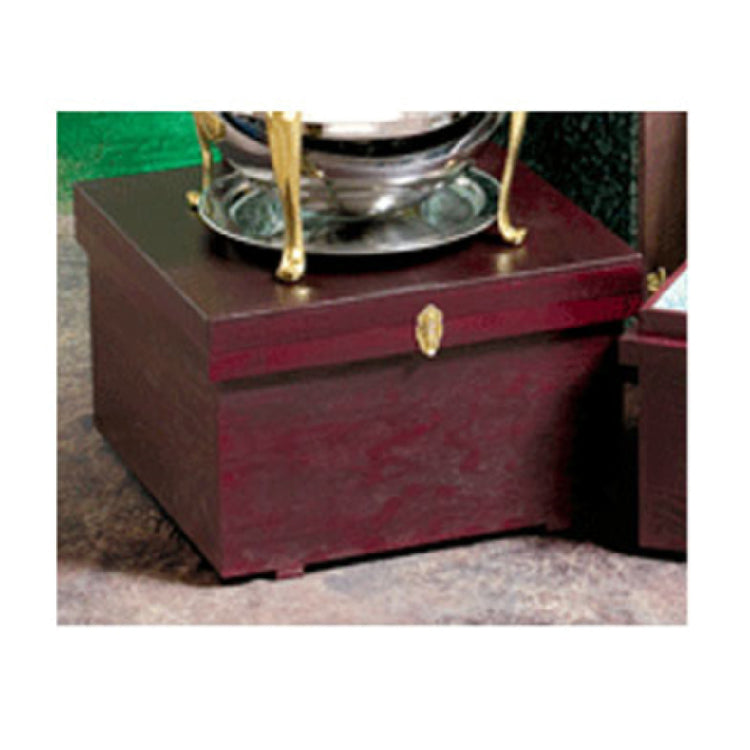 The Bon Chef 812000W Chafer Box is a precisely designed storage solution with dimensions of 25" x 25" x 15"H. It is specifically tailored to accommodate Elite, Manhattan, Olympia, and stackable round chafers, offering exceptional versatility for various catering and food service settings. This chafer box is crafted from high-quality wood and features a dark mahogany finish, providing an elegant and sophisticated appearance that complements upscale dining environments. Its construction ensures durability and long-lasting performance, making it a reliable choice for professional caterers and hospitality venues. The Bon Chef 812000W is not just functional but also enhances the aesthetic appeal of any service area, making it a valuable investment for businesses seeking to elevate their presentation standards. Ideal for use in banquet halls, hotels, and high-end catering services, this chafer box meets the diverse needs of the food service industry by offering both form and function. Its compatibility with multiple chafer styles underscores its flexibility, while the robust wood build ensures it withstands the rigors of regular use. Overall, the Bon Chef 812000W Chafer Box combines practical design with luxurious aesthetics, making it a distinguished choice for discerning professionals.