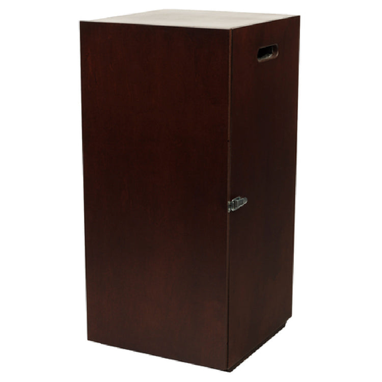 The Bon Chef 840001W Urn Box is a meticulously crafted piece with dimensions of 16 inches by 16 inches by 28 inches in height, designed to accommodate a 1-1/2 gallon insulated urn and a 2-gallon non-insulated urn. This product showcases a sophisticated dark mahogany finish, making it a stylish and functional addition to any catering setup, banquet hall, or hospitality service environment. The use of high-quality wood not only adds a touch of elegance but also ensures durability and long-lasting performance, catering to both aesthetic and practical needs. The urn box's ability to support different sizes of urns enhances its versatility, making it suitable for a variety of services, from formal events to casual gatherings. Its design and finish complement a range of decors, offering a seamless integration into existing setups. The Bon Chef 840001W Urn Box, with its blend of functionality and style, stands out as an ideal choice for those seeking to elevate their service delivery across diverse market segments within the hospitality industry, providing a reliable and visually appealing solution for beverage presentation and service.