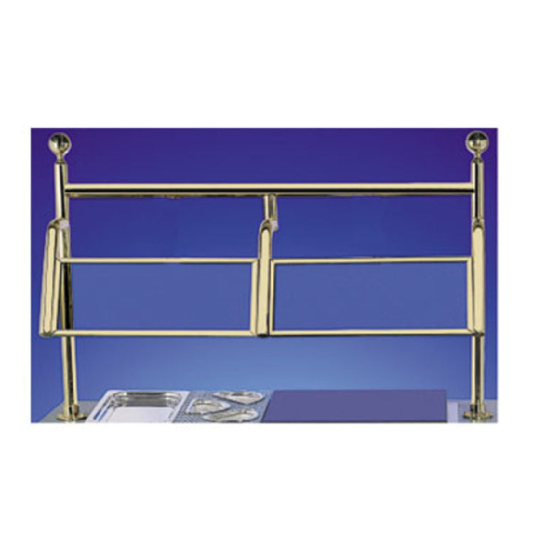 The Bon Chef 90095 Sneeze Guard - Single For 6' Modular Buffets is a precision-engineered protective barrier measuring 6' x 44" x 16", crafted specifically for modular buffet setups. Constructed with high-quality brass, this sneeze guard not only provides a sturdy and reliable solution for safeguarding food from contaminants but also adds an element of elegance and sophistication to buffet presentations. The generous dimensions ensure comprehensive coverage and protection, making it a versatile choice for various settings such as hotels, restaurants, and catering events. By integrating seamlessly with 6' modular buffets, it offers an effective way to maintain hygiene standards without compromising on aesthetics. The use of brass not only enhances durability but also aligns with upscale dining environments, catering to both functional and decorative needs. This sneeze guard serves as an essential component in the food service industry, where maintaining cleanliness and preventing contamination is paramount. Its robust construction and size specification make it a valuable asset for any establishment looking to uphold health standards while providing an inviting and appealing buffet display. The Bon Chef 90095 is designed to meet the demands of high-volume food service operations, ensuring both safety and style in equal measure.