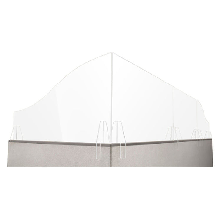 The Bon Chef 90176-2 Office Cubicle Partition Shield is a rectangular, clear acrylic shield measuring 36 inches by 5 inches by 23-3/4 inches, designed to enhance safety and privacy in office environments. This partition shield is meticulously crafted in the USA, emphasizing quality and durability. Its sleek, transparent design allows for unobstructed communication while maintaining a professional aesthetic, making it an excellent choice for modern office layouts. The use of acrylic material ensures robustness and resilience against daily wear and tear, providing long-lasting utility. This partition serves as an effective barrier, contributing to a healthier workspace by minimizing direct contact and airborne transmission between individuals, thus aligning with modern health standards. Its dimensions are thoughtfully chosen to fit seamlessly into most standard cubicle setups, offering flexibility in various office configurations. The Bon Chef 90176-2 is not just a practical solution but also a versatile product that meets the needs of different market segments within the office industry, from large corporate settings to smaller business environments. Its functional design, combined with high-quality manufacturing, marks it as a valuable addition to any professional workspace looking to enhance safety and privacy without compromising on style or communication efficiency.