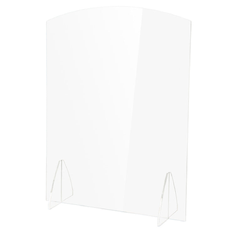 The Bon Chef 90220-2 Presidential Room Partition is a meticulously crafted room divider designed to elevate the aesthetics and functionality of any space it inhabits. Measuring 46 inches in width, 16 inches in depth, and 60 inches in height, this partition is both substantial and elegant. It features an arched top, adding a touch of sophistication to its design, while the 1/2-inch thick acrylic construction ensures durability and transparency. The flame-polished edges not only enhance its visual appeal but also contribute to safety by smoothing out any sharp boundaries. This clear acrylic partition is proudly made in the USA, ensuring high-quality production standards. Its versatile design makes it suitable for various environments, from upscale dining establishments looking to create intimate spaces to corporate settings that require flexible yet stylish room arrangements. The Bon Chef 90220-2 Presidential Room Partition is a superior choice for those seeking a blend of elegance, functionality, and American craftsmanship in their interior design solutions.