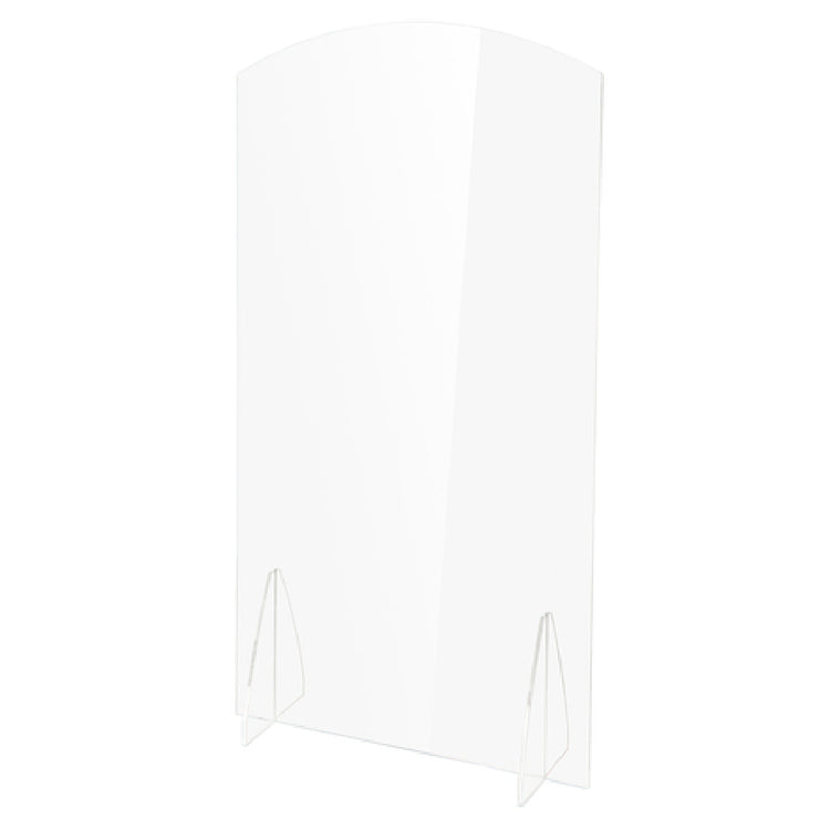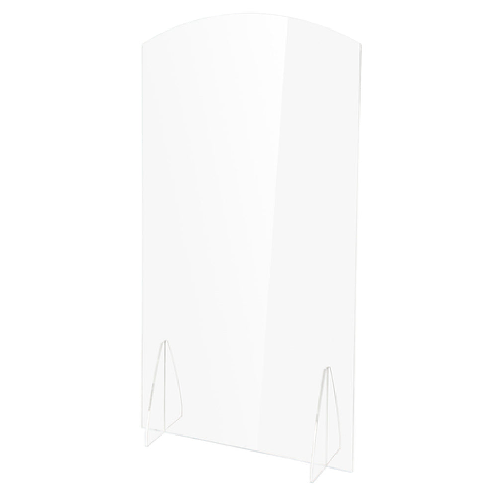 The Bon Chef 90220-3 Presidential Room Partition is a distinguished partition designed with precision, measuring 36"W x 16"D x 72"H and featuring a 1/2" thickness. Its arched top and flame polished edges offer a refined aesthetic, making it a striking addition to any environment. Crafted from clear acrylic, this partition not only ensures durability but also provides a transparent, modern appeal, suitable for diverse settings. Its substantial size and design make it ideal for use in upscale dining rooms, conference spaces, or any area requiring an elegant and functional divider. The clear acrylic material allows for light transmission while maintaining a sense of separation, ensuring privacy without sacrificing openness. Made in the USA, this partition reflects quality craftsmanship and attention to detail, catering to markets that value both form and function. Its robust construction and stylish design meet the needs of industries ranging from hospitality to corporate environments, offering a versatile solution for space delineation. The Bon Chef 90220-3 Presidential Room Partition represents a fusion of aesthetic elegance and practical utility, making it a valuable asset for various professional settings.