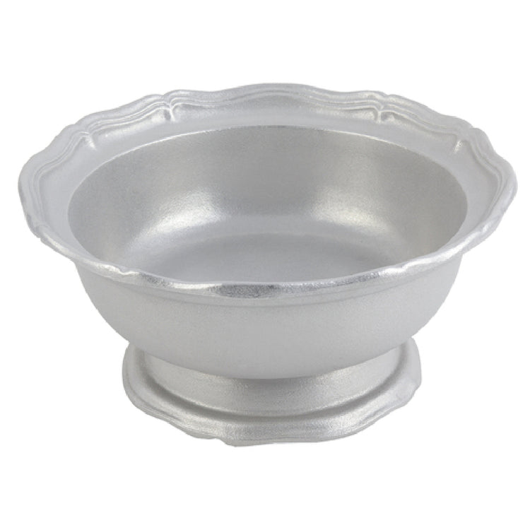 The Bon Chef 90621038PWHT Bowl is a 2-quart capacity serving vessel designed with practical dimensions of 10-1/2 inches in diameter and 5 inches in height. It features a classic round shape enhanced by a sturdy pedestal base, providing both aesthetic appeal and stability during use. Constructed from aluminum, it is coated with a unique ceramic-look finish that adds a touch of elegance while maintaining durability. The bowl's Sandstone, Pearl White color offers a neutral yet sophisticated appearance suitable for various dining settings. This product is particularly advantageous for restaurants, catering services, and hospitality venues seeking versatile and attractive serving solutions. The combination of lightweight aluminum and a ceramic-look coating ensures easy handling and maintenance, optimizing it for repeated use in high-traffic environments. Its design caters to both functional and decorative purposes, making it an ideal choice for buffet displays, formal dining arrangements, and other food presentation needs. The Bon Chef 90621038PWHT Bowl exemplifies a blend of form and function, meeting industry demands for quality tableware that enhances the overall dining experience.