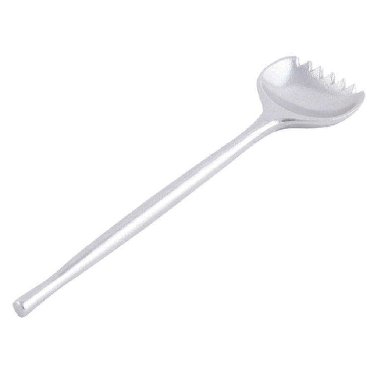 The Bon Chef 9086 Salad Serving Fork 11-1/2" Aluminum With Pewter-Glo Finish is a meticulously crafted utensil designed for both professional and home kitchen environments. This serving fork stands at 11-1/2 inches long, providing an ideal balance of reach and control for efficiently serving a variety of salads. Made from high-quality aluminum, the fork is both lightweight and durable, ensuring ease of use while maintaining structural integrity. Its distinctive Pewter-Glo finish not only enhances its aesthetic appeal, giving it a sophisticated, polished look, but also provides a protective layer that contributes to its longevity. The Bon Chef 9086 is especially suited for catering companies, upscale restaurants, and homes emphasizing elegance in their dining presentation. Its robust construction and refined finish make it a versatile tool that seamlessly integrates into different culinary settings, ensuring it meets the exacting standards of culinary professionals and discerning home chefs alike. This product exemplifies the confluence of form and function, making it a reliable choice for those who value both style and practicality in their dining ware.