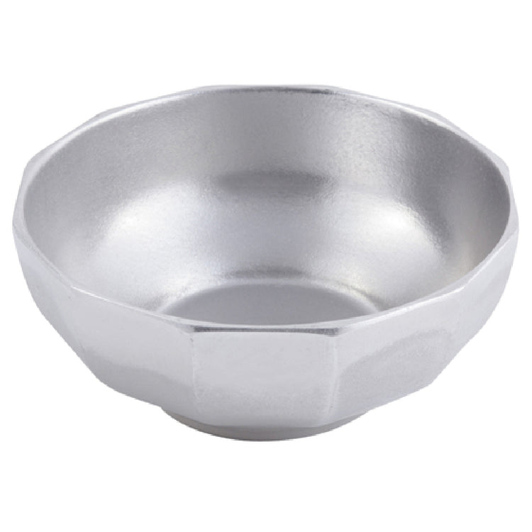 The Bon Chef 9091 Prism Serving Bowl is an elegantly designed round vessel with a capacity of 4 quarts, making it ideal for various dining and catering settings. Measuring 12 inches in diameter and standing 4-1/2 inches tall, this serving bowl is crafted from high-quality aluminum, ensuring durability and longevity. Its unique footed design provides stability and adds an element of sophistication to any presentation. The bowl features a distinctive Pewter-Glo finish, giving it an attractive luster that enhances its visual appeal while maintaining practicality in food service environments. This finish not only accentuates its aesthetic charm but also offers a practical advantage by being easy to clean and maintain. Certified by NSF, the Bon Chef 9091 Prism Serving Bowl meets high standards of public health protection, making it a reliable choice for professional kitchens and catering services. Its versatile nature allows it to seamlessly integrate into various market segments, including restaurants, hotels, and event catering, where both style and functionality are paramount. This serving bowl stands out as a premium option for those seeking a combination of aesthetic value and dependable performance in their serving ware collection.
