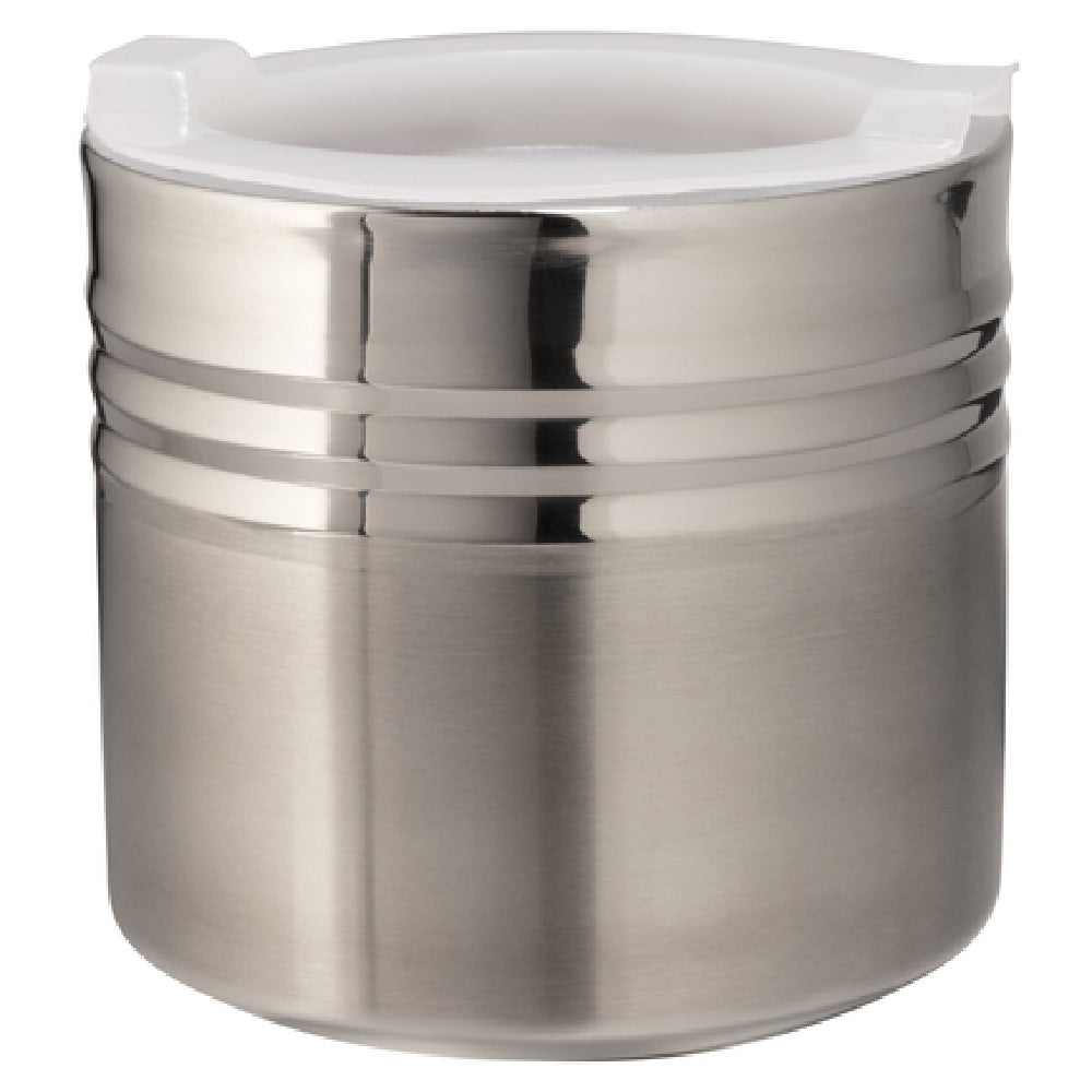 The Bon Chef 9315 Cold Wave Salad Dressing Container is a meticulously designed piece, perfect for maintaining the temperature and freshness of salad dressings in any culinary setting. This container holds a substantial volume of 28 ounces, offering ample space for various dressings. With dimensions of 5-1/8 inches in diameter and a height of 5 inches, it presents a compact, yet efficient design, making it suitable for both individual and commercial use. The round structure is enhanced with a triple-wall design, providing advanced insulation capabilities. This unique feature allows it to keep contents cold for up to 8 hours at ambient temperature, ensuring freshness and reducing waste. The container is equipped with a stackable plastic cover, facilitating easy storage and organization in busy kitchen environments. Constructed from stainless steel, it boasts durability and resistance to wear, ideal for high-traffic areas like restaurants and catering services. The Bon Chef 9315 Cold Wave Salad Dressing Container is an essential tool for any foodservice operation requiring reliable temperature maintenance for dressings, enhancing both operational efficiency and customer satisfaction. Its innovative design and robust construction highlight its unique value proposition across various market segments within the food industry.