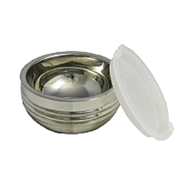 The Bon Chef 9317 Cold Wave Bowl is a meticulously crafted piece designed to keep your culinary creations chilled and fresh. With a capacity of 1 quart, this bowl features dimensions of 6-3/8 inches in diameter and 3-3/8 inches in height, making it a compact yet versatile solution for various food service needs. Its round shape and innovative triple-wall construction allow it to maintain a cold environment for up to 8 hours at ambient temperature, making it ideal for buffets, catering events, and self-serve stations. This high-performance dish is complemented by a stackable plastic cover, enhancing its practicality for space-saving storage. Crafted from durable stainless steel, the Bon Chef 9317 ensures long-lasting reliability and a sleek, professional appearance. This cold wave bowl is particularly valuable for restaurants, hotels, and event venues aiming to provide a superior dining experience by keeping salads, fruits, and cold appetizers chilled for extended periods. Its ability to be pre-frozen adds to its efficiency, reducing the need for ice and ensuring mess-free service. The Bon Chef 9317 Cold Wave Bowl elegantly combines functionality with aesthetic appeal, catering to the diverse demands of the hospitality industry.
