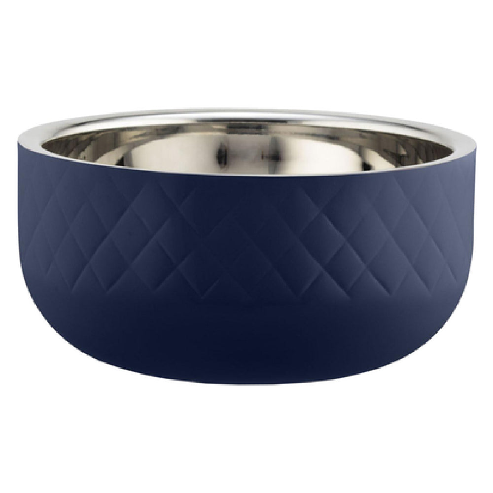 The Bon Chef 9319DICOBALTBLUE Cold Wave Bowl is a versatile serving solution designed to maintain the freshness of your dishes with its innovative technology. With a capacity of 3.5 quarts, this bowl measures 9-7/8 inches in diameter and 4-3/4 inches in height, making it suitable for a range of culinary applications. Its round shape coupled with a distinct diamond design adds a touch of elegance to any food presentation. The triple wall construction of the bowl is engineered to keep food cold for up to 8 hours, even at ambient temperatures, by utilizing a pre-freezing technique that enhances thermal retention. A stackable plastic cover is included for efficient storage and easy organization, making it a practical choice for professional kitchens and catering services. Crafted from durable stainless steel, the bowl is finished in a striking cobalt blue, offering both durability and a visually appealing aesthetic. This product is ideal for catering companies, restaurants, and hospitality venues that require reliable and stylish serving ware to enhance their food presentation while maintaining optimum temperatures.
