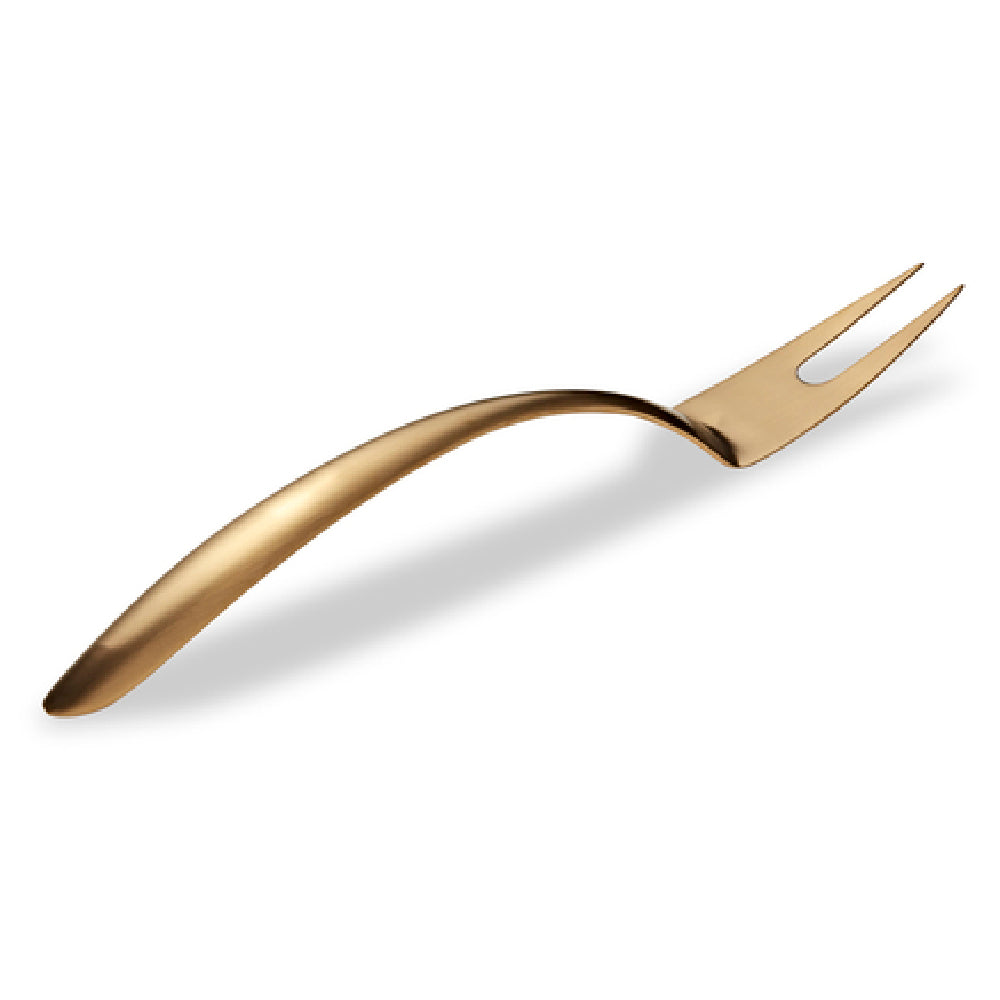 The Bon Chef 9455GM EZ Use Banquet Serving Fork 14" Hollow Cool Handle is a specialized serving utensil designed to meet the rigorous demands of high-end banquet services. Measuring 14 inches in length, this fork is crafted from 18/8 stainless steel, ensuring superior strength and resistance to corrosion, making it an ideal choice for both indoor and outdoor events. The fork is PVD coated, providing a sophisticated gold matte finish that enhances its aesthetic appeal, making it a standout piece on any banquet table. The hollow cool handle is a distinctive feature, offering both comfort and ease of use during prolonged service periods, minimizing heat transfer and ensuring a comfortable grip. This banquet serving fork is particularly suited for upscale dining environments, catering events, and hospitality services that prioritize both function and elegance. Its design caters to the needs of professional caterers and service staff who require durable and stylish serving utensils. The Bon Chef 9455GM combines functionality with luxury, making it a valuable addition to any serviceware collection, particularly for those aiming to impress guests with both the quality and presentation of their culinary offerings.