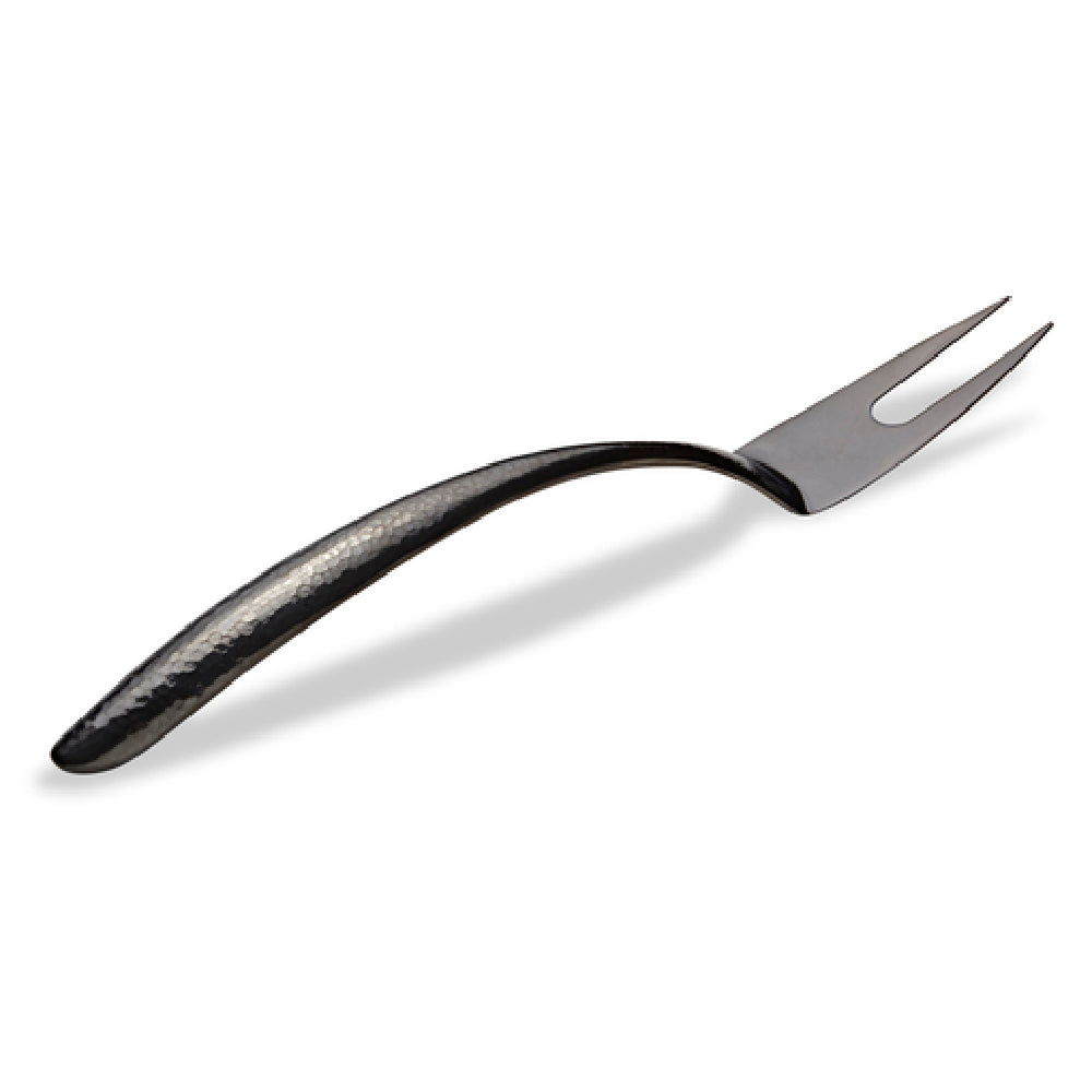 The Bon Chef 9455HFB EZ Use Banquet Serving Fork 14" Hollow Cool Handle is a meticulously crafted utensil designed for both functionality and elegance in banquet settings. This serving fork features a substantial length of 14 inches, making it ideal for serving large portions with ease. Constructed from high-quality 18/8 stainless steel, it promises durability and resistance to corrosion, ensuring long-term use in demanding environments. The hollow cool handle is a standout feature, offering a comfortable grip that remains cool to the touch even during extended use, enhancing user safety and comfort. The fork is PVD coated in a sophisticated black hue, providing an additional layer of protection while contributing to its sleek aesthetic. The hammered finish not only adds a touch of elegance but also reduces visibility of wear and tear, maintaining its pristine appearance over time. This serving fork is an excellent choice for catering services, hotels, and restaurants seeking a reliable and stylish serving utensil that complements a wide range of table settings. Its combination of practical design and refined aesthetics makes the Bon Chef 9455HFB a valuable addition to any professional dining operation.