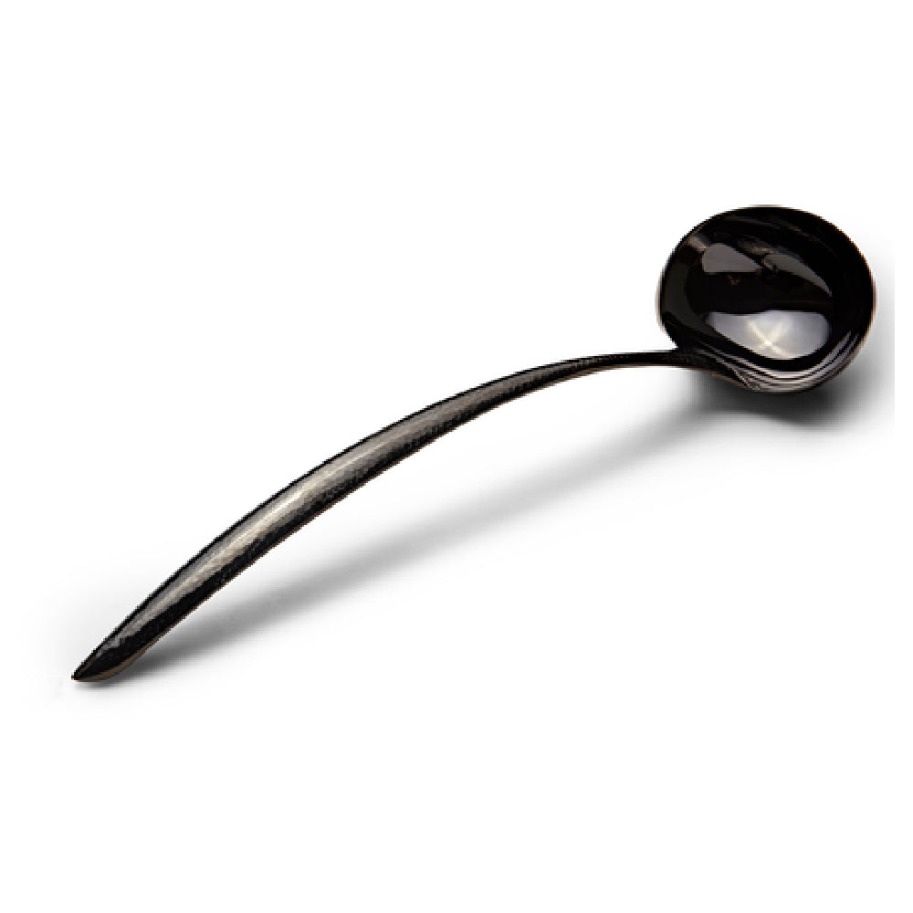 The Bon Chef 9456HFB EZ Use Banquet Serving Ladle 6 oz. 15" is a meticulously crafted utensil designed for efficient banquet service. With a generous capacity of 6 ounces, this ladle is perfect for serving soups, sauces, and gravies in large-scale catering events. Measuring 15 inches in length, it provides ample reach into deep pots, ensuring an effortless and clean serving experience. The ladle features a hollow cool handle, which remains comfortable to the touch even when exposed to hot contents, enhancing user safety and comfort. Constructed from 18/8 stainless steel, this serving ladle is not only durable but also resistant to rust and corrosion, ensuring longevity in demanding food service environments. The PVD coating adds an additional layer of resilience while providing a sleek black appearance that complements any banquet setting. Additionally, the ladle boasts a hammered finish, offering a unique aesthetic appeal that sets it apart in professional catering contexts. The Bon Chef 9456HFB is ideal for banquet halls, hotels, and other food service establishments seeking a reliable, stylish, and efficient serving solution that meets the practical demands of large-scale food presentation.