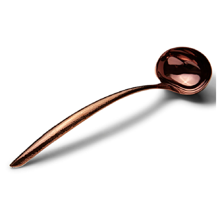 The Bon Chef 9456HFRG EZ Use Banquet Serving Ladle is a meticulously crafted culinary tool designed to enhance dining experiences across various food service segments. With a generous capacity of 6 oz., this ladle is perfect for serving soups, sauces, and dressings at banquets and catered events. Measuring at 15 inches in length, it provides optimal reach and control, ensuring professional serving efficiency. Constructed from high-quality 18/8 stainless steel, the ladle boasts superior durability and resistance to corrosion, making it a reliable choice for frequent use in commercial kitchens. The hollow cool handle design offers a comfortable grip and reduces heat transfer, enhancing user safety and comfort during prolonged service. Adding a touch of sophistication, the ladle features a PVD-coated rose gold finish with a hammered texture, making it an aesthetically appealing serving utensil that complements elegant table settings and upscale dining environments. This combination of practicality and refined design makes the Bon Chef 9456HFRG a versatile choice for restaurants, hotels, and catering businesses that demand both functionality and style in their serving ware.